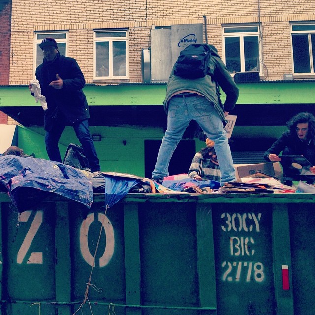 On Thursday the crew charged with clearing out the old Academy Records Annex location on N. 6th tossed a bunch of "unwanted" records into a dumpster, prompting Brooklyn's vinyl enthusiasts to descend on the rejects. I jumped in, quickly found myself covered in hot pink paint, and dug until I found a vein of scratched up 45s. I also snagged a Miles Davis "Boplicity" 78 that is worth more than the cost of my cab ride home, helping me break even for the day. My driver, Anthony, told me he'd once picked up Mel Brooks when I mentioned my new Spaceballs laser disc, also unearthed from the mess.
