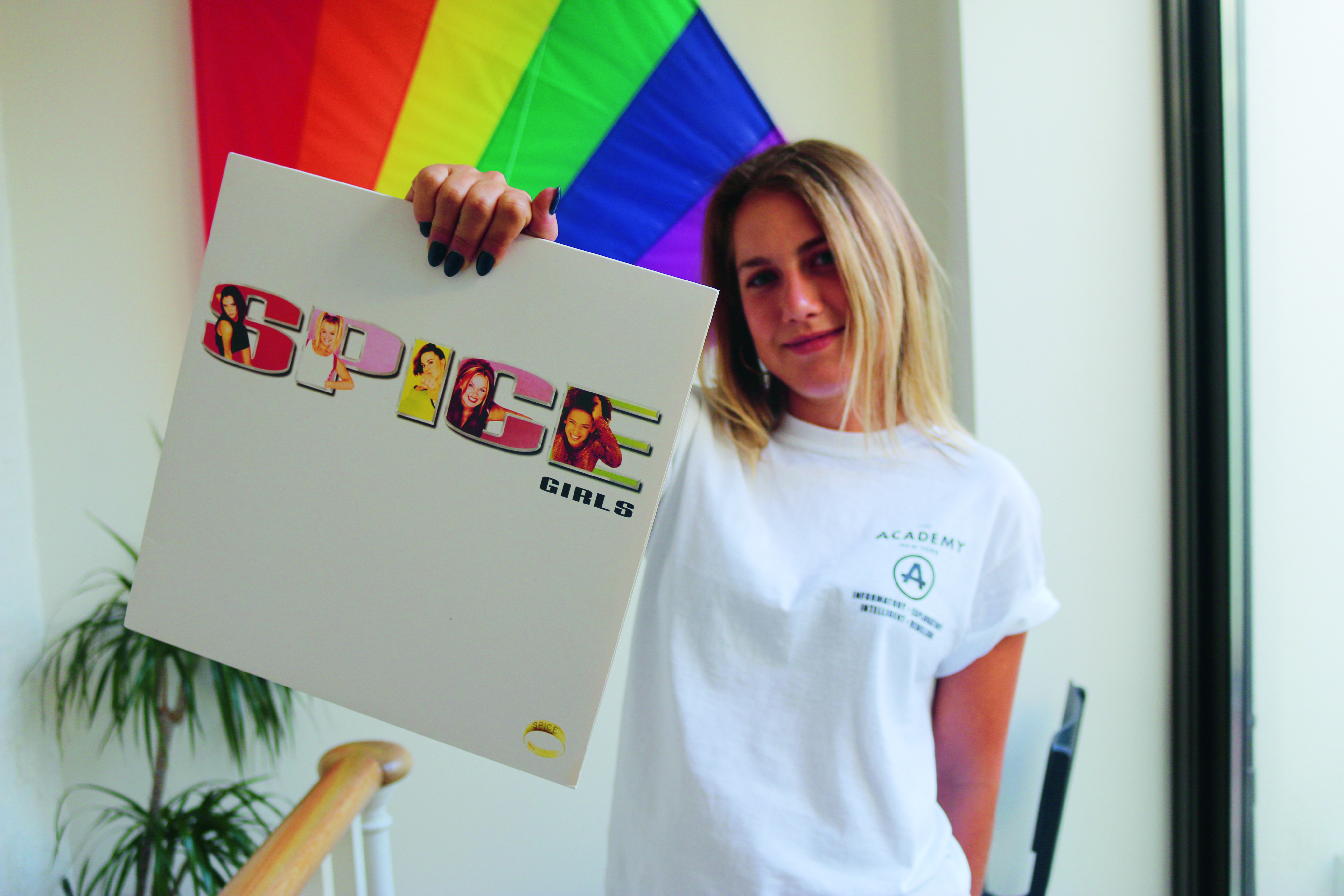 Elsa Hill, DJ from Worldwide FM, holding her favorite women-made album.