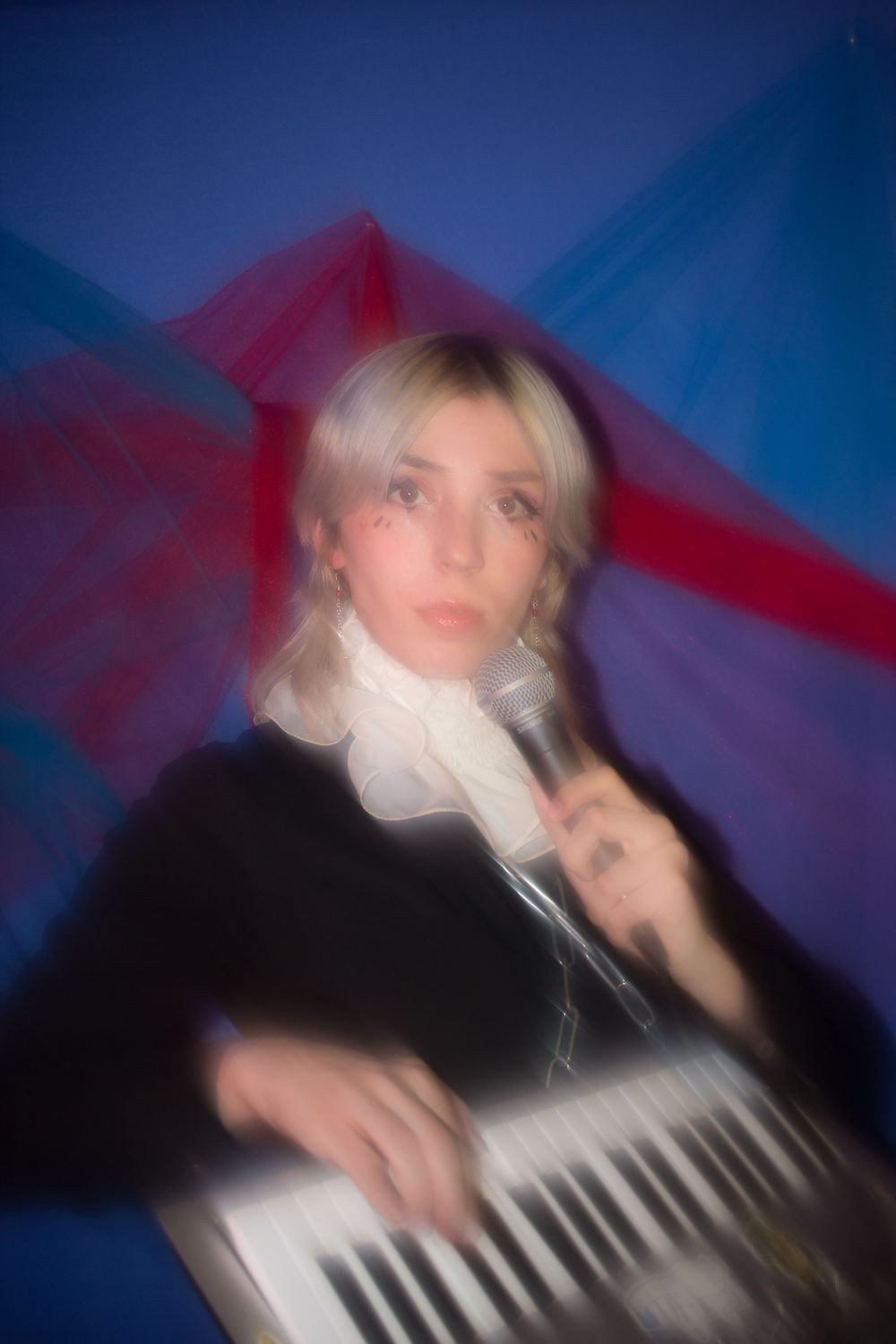 And so she wrote the entirety of Chain Reaction during lockdown, citing early Depeche Mode, CHRVCHES, and TR/ST as influential for how they were able to use high energy beats alongside somber lyrics to create a sound that was both fun and serious at the same time. "The number one thing with music that I try to keep in focus is that it's kind of silly," she says, articulating her own vision. "It’s not entirely serious, because you’re dancing around and singing in your bedroom. Even if I’m writing about something super serious and personal, I try to keep a touch of light-heartedness and fun and clownery in it."