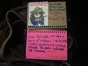 Hannah: So true. The official Def.GRLS tour game: The Great American Hero’s Quest; The Race for Badger’s Cup tests each GRL’s mental, physical and psychic strengths. It says so right on the first page: