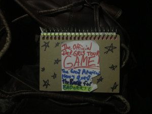 Mark: I’m most excited for all of the rock and roll, all of the debauchery, for all of the drugs, for all of the emotions and that I’m gonna win the official Def.GRLS tour game: The Great American Hero’s Quest; The Race for Badger’s Cup!