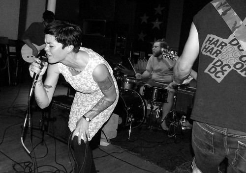 In her music and performance, Meredith Graves presents an aggressive, unattainable and intimidating attitude. Her lyrics are often aggressive or sexually explicit. “There's no room in this world for people who hate men, fuck you // My best friend is back in town. There's a bad taste in my mouth. Her eyes fell low and heavy with shame and cum.”