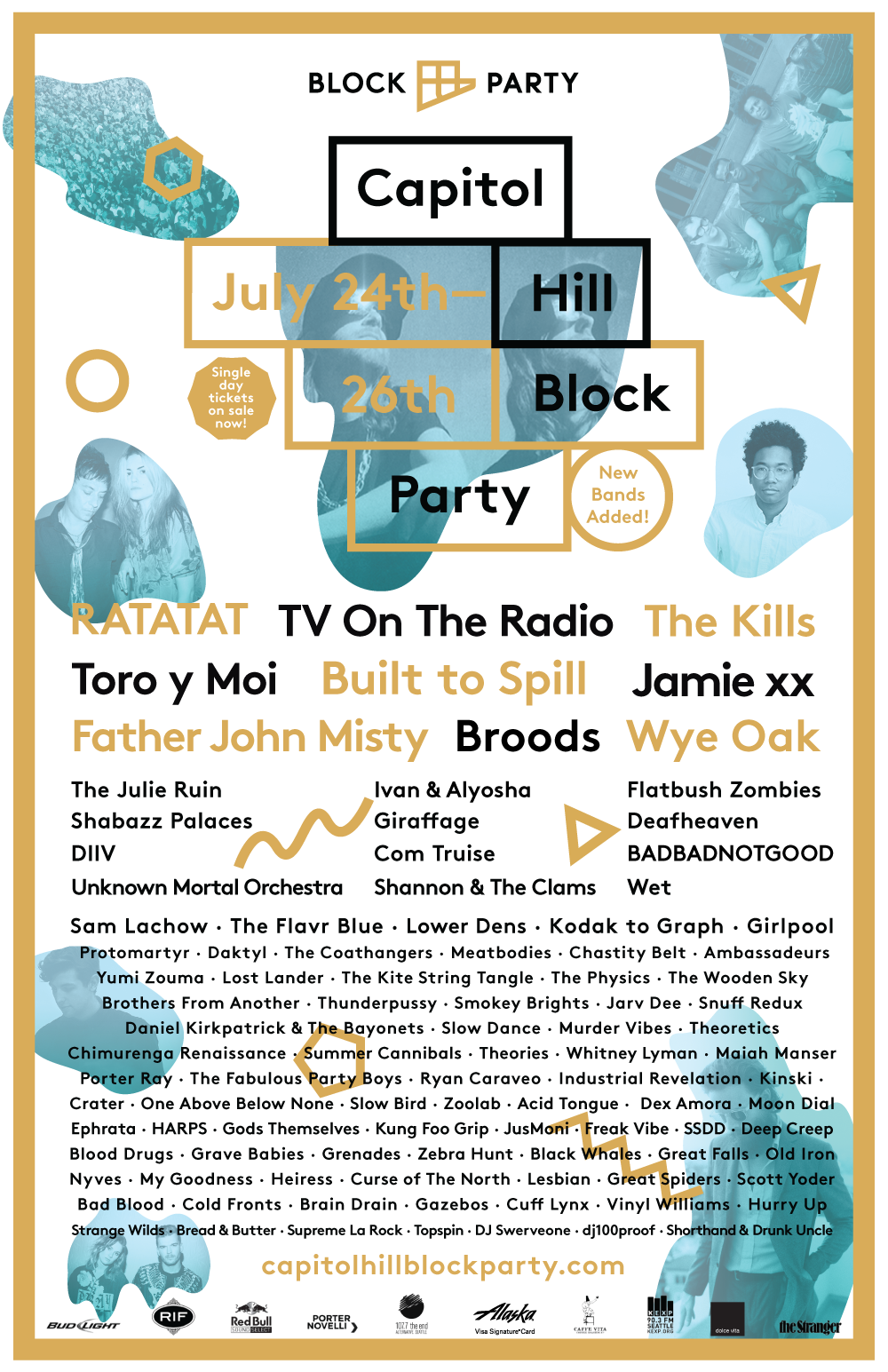 Capitol Hill Block Party is Seattle’s beloved street party meets music festival. Usually convening at the end of July, this is the block party’s third year running. Taking up over six city blocks, it showcases more than 100 artists. The neighborhood of Capitol Hill, traditionally known for its colorful artist and music fueled culture, will be entirely occupied with parties, DJ sets, and many other events aside from the Block Party itself. It isn't so often that new local bands have the opportunity to play alongside world renowned acts such as TV On The Radio, The Kills, Father John Misty, RATATAT, Toro y Moi, etc. Below are a few local bands playing that you definitely shouldn’t miss because you’re waiting in line for a festival beer.