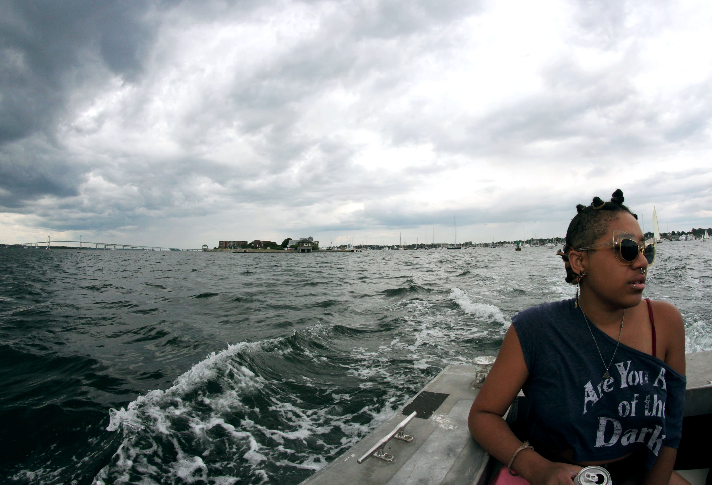 Two trains, three buses, a cab, a shuttle, and a water taxi, amounting to a cool eleven hours of traveling later, we arrive at Newport Folk Fest to some bad news; the skies are flashing ill intent and there’s been an “official weather alert” sent out. We are asked to join in prayer.