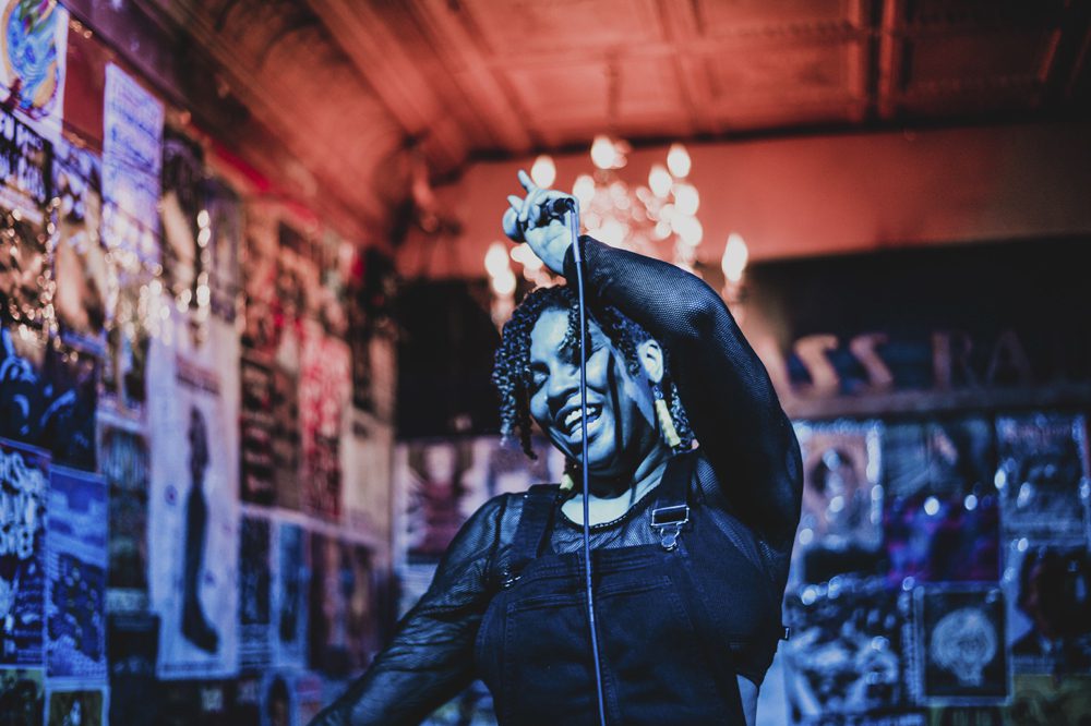 As a solo artist, Miss Eaves (aka Shanthony Exum) really does do it all herself. The feminist electro-rapper and multi-media artist is self-managed, books every show, directs and edits her own music videos, and drives herself from city to city as she tours mostly alone. In the summer of 2017, "Thunder Thighs," a track off her debut release, became a viral body positivity hit, leading to an op-ed in The New York Times, and getting on lists alongside Aretha Franklin and Beyonce. She has successfully booked four DIY tours, playing shows and festivals with Tune-Yards, Wheatus, and MC Frontalot, and chronicled her experiences for The Creative Independent. This year she toured in support of her follow-up EP Sad and brought her empowering and hilarious tracks like "Bush for the Push" and "Fuccboi Salute" to new crowds in the US and Europe.