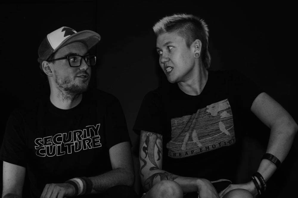 Snailmate are a nerdcore duo that have been touring since their formation in 2015. Composed of Kalen Lander (vocals/synth) and partner in crime Ariel Monet (drums/vocals), they book/fund their own tours, screenprint their own shirts, design all their posters, make their own buttons, and do basically every other aspect of managing a tour with a master DIY work ethic. Kalen was formerly in TKLB? (The Kalen Lander band), but after he tired of touring with a DJ in the traditional hip hop sense, was inspired to perform everything in Snailmate live. Snailmate has racked up 15 releases on their Bandcamp and claim to have had a "light" year of touring because they are working on their new album. In total, they did nine shows in two weeks in Japan, sixteen shows in three weeks in Europe, and over 100 shows in the USA. In 2020 they have plans to return to Europe and Japan as well as tour Brazil for the first time.