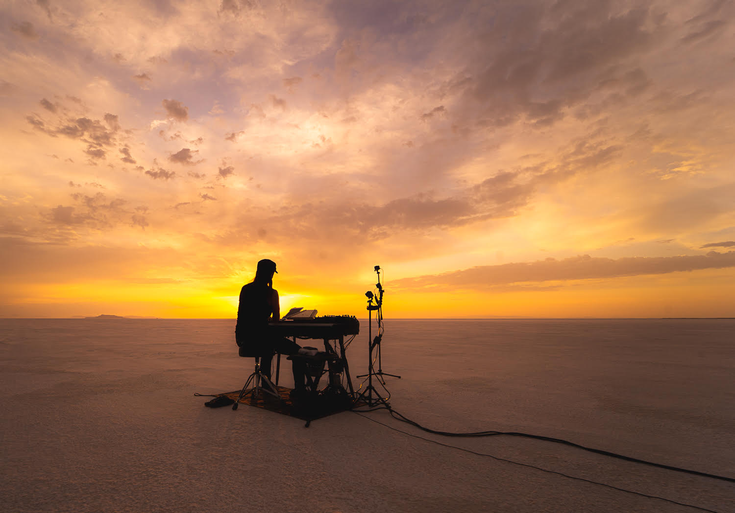 Playing shows at outdoor locations Bowling had never visited has proven to be the ultimate test of planning meeting uncertainty, especially when she played at the Utah Salt Flats. “It's crazy hot so we wanted to do it at sunrise, so we went out there at 3:30 AM. Driving out there, there's no one there, it's crazy windy, no signs of life. I've never seen a darkness like that. We almost didn't do it,” the pianist says. “We did it and it was just incredible. It felt like it was an example of the place working into my playing. The wind was playing the strings on the little harp I have on top of my keyboard. Part of the point of this was to find inspiration elsewhere since I was missing the exchange between audience and performer, and missing the adventure of being out on the road. The salt flats were the perfect example of what I wanted coming to fruition.”