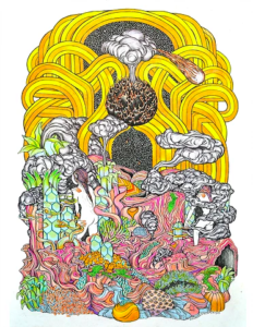'Of This Land' by Petra Glynt. Pen and pencil crayon on illustration board 11' x 15'.