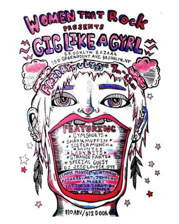 Last week on Friday the 13th at Brooklyn Bazaar, Women That Rock put together their first GIG LIKE A GYRL summer extravaganza showcasing women in punk rock & other DIY music scenes, women of color and LGBTQ+ artists & musicians. The stacked lineup included GYMSHORTS, Sharkmuffin, Sister Munch, Monte, Lady Bits, Strange Parts & DJ Jess Louise Dye (of High Waisted), and you also could have gotten your first Friday the 13th tattoo, take goofy (or spooky) photos in the PhotoBooth, and browse through the special pop-up night market featuring apparel, jewelry, art & more creations by local female artists.