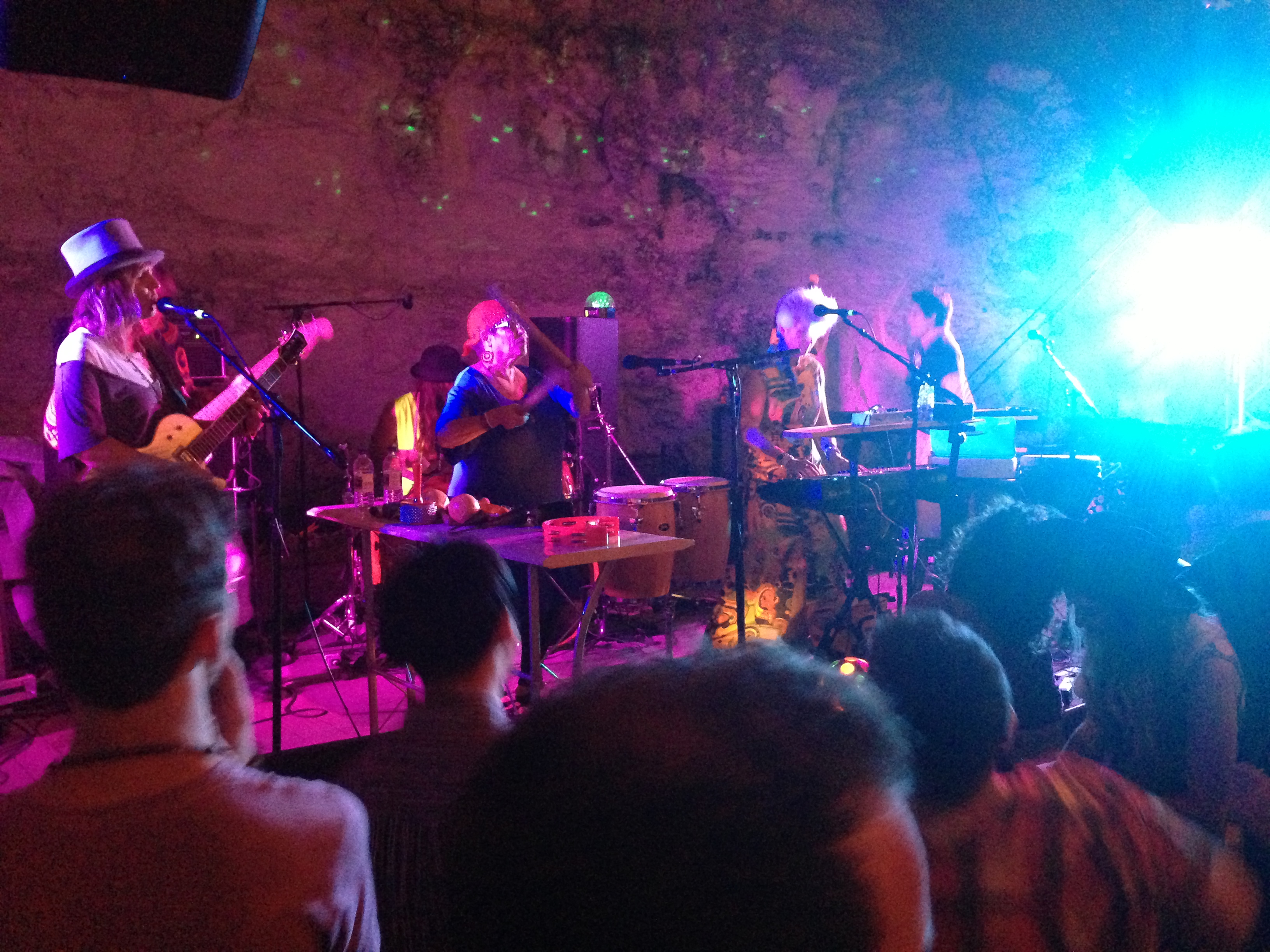 It's not actual a venue, it's a wine bar. After reading the fine print on a very misleading contract, we learned that we'd have to rent an entire soundsystem to even have a show. We had to hire our own sound guy too. Even after pulling off both these feats (no easy task considering our out-of-town status), we weren't allowed to set up until after 7pm, pushing our showcase back an hour. There weren't even extension cords at the "venue" so I had to haul ass down 6th to a CVS to purchase whatever they had in stock. When psych rockers Electric Eye finally took the stage, their unravelling guitars definitely eased my frayed nerves.