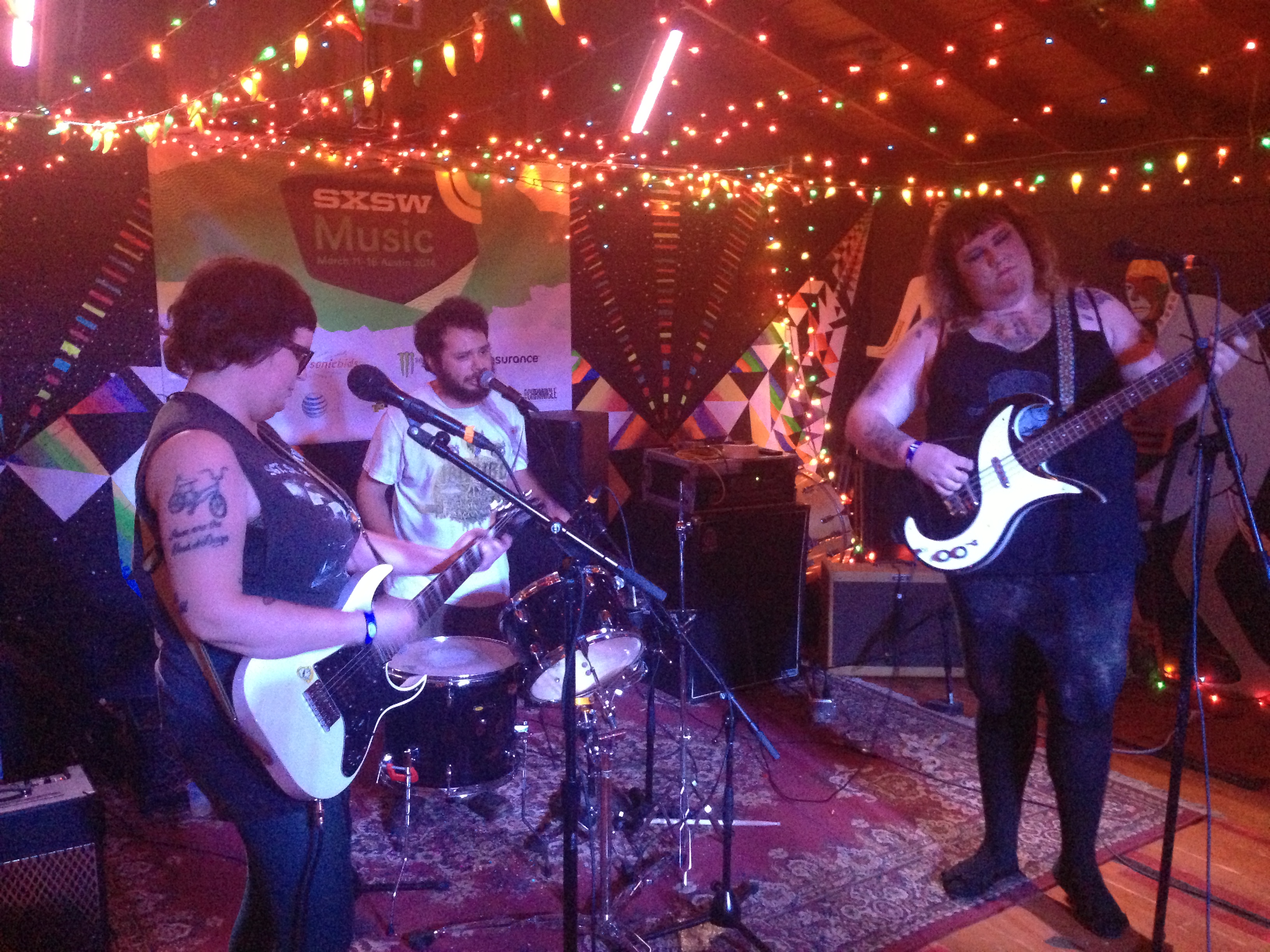 Embattled with the venue from Hell, I was feeling a bit depressed - in part because the show hadn't gone as planned, we'd inconvenienced Austin friends kind enough to give us rides while juggling insane work schedules, but also because I was missing out on a lot of bands I wanted to check out while going through the whole retracted process. I smoked some weed a bartender had given me the night before, ate a veggie burrito from Chillitos, and stumbled into The Vortex, a theater/bar in a barn hosting a party that featured Italian bands and a Patrizi's food truck. I sat in the sun and took in the sounds of Omosumo, an electronic outfit that could be the lovechild of Led Zeppelin & Daft Punk sent away to boarding school in Palermo. Runner Up: When Red 7 played The Hold Steady on the soundsystem right before The Hold Steady playedQueerest Showcase: Y'all or Nothing, Presented by Mouthfeel & Young Creature