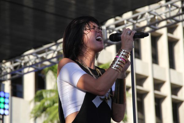 Not being the DJ type of gal, I planted myself on the rail at the Altimate Main Stage in the stagnant 90 degree heat of downtown L.A. (the things I do in the name of music!). First on the bill was the winner of ALT 98.7’s Summer Song Contest, an L.A. based indie pop band appropriately named Freedom Fry. Singer Marie Seyrat donned a short, flowy lace dress and Janis Joplin shades, a very fitting outfit choice for the carefree California pop music that Freedom Fry creates. It’s not the type of music that hits you hard, but instead carries you along mellow wavelengths of co-ed vocal harmonies and beachy guitar vibes. With its catchy bass line, cowbell and elastic synth line,“Friends and Enemies” had just enough energy to get the whole event going. “Home,” an anthem that pays homage to life the Golden State, was another strength in their set and resonated with the locals in the crowd - if there is one thing I learned about Angelenos this weekend it is that they certainly have a lot of hometown pride. The tune hearkens to a longing for the state as a magnet for people seeking something a little closer to paradise, reminiscent of The Mamas and The Papas’ classic “California Dreamin',” with its slow melancholic guitar strumming and subtly tragic lyrics. After only four songs, the band finished their set, leaving me in an enamored California-Proud state of mind, ready to celebrate Independence Day with more music.