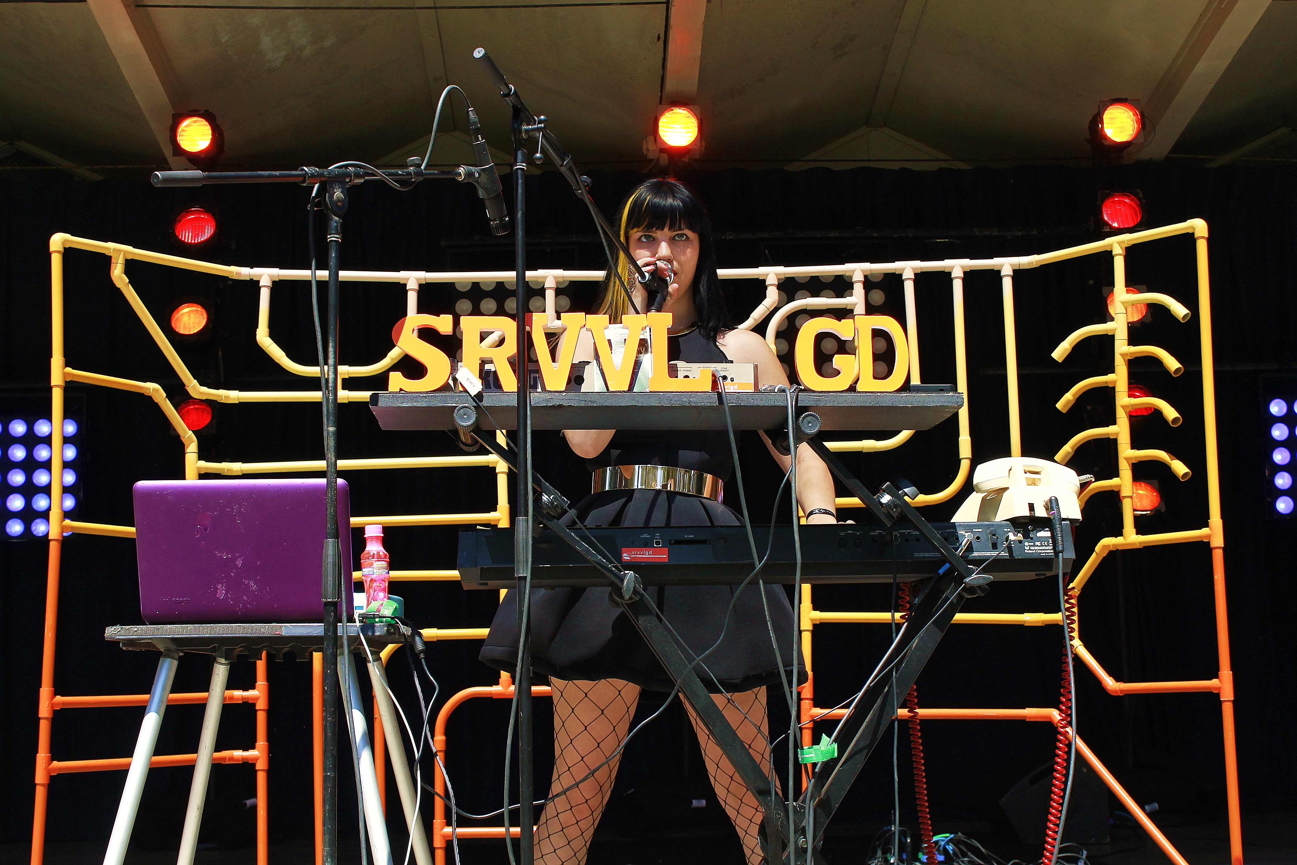 Survival Guide was next on my list. This was one of the few artists that I had listened to quite a bit beforehand, so I knew I was sure to enjoy. To my surprise, it's actually a one-woman band. The lady behind the music, Emily Whitehurst, manned, or should I say woman-ed, a complex musical setup of a laptop, keyboards, looping machines, and strangely, a telephone. Her sound features a lot of instrumentation that I would never have guessed was created as a solo endeavor. That the music came mostly from machines rather than a full band didn’t detract from the performance in the slightest. Though she was confined to a small spot on the stage, she commanded the attention from the growing crowds of the day as she breezed through an upbeat set of electronic indie pop tunes.