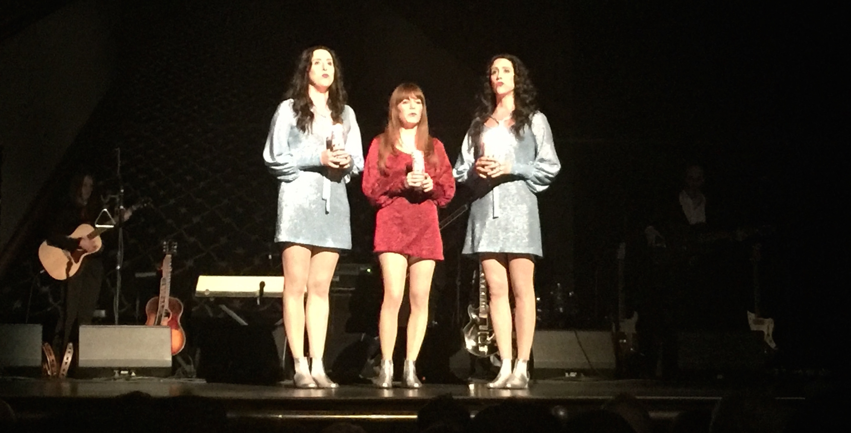 For part two of the performance, Lewis entered with The Watson Twins, each holding a candle and harmonizing on "Run Devil Run," Rabbit Fur Coat's first track. In fact, the entire segment followed the album's order, ending with a reprise of the bittersweet ballad "Happy." Ward contributed his guitar to several numbers and sang in "Handle with Care."