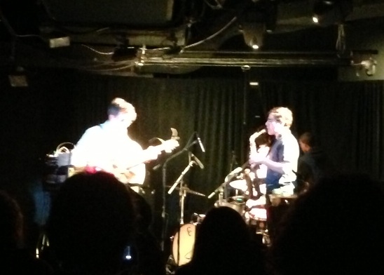 Horse Lords approach from almost the opposite angle, attacking the senses with an onslaught of dense guitar work and pounding polyrhythms delivered by not one but two live drummers, all members of the band performing with scientific focus. That intensity revealed much about the intention behind their work in terms of both composing songs and performing them live; their material hinges on intonation tuning, in which note frequencies relate to mathematical ratios. Even if that concept is a bit over the heads of most casual listeners (mine included) the essence of what it accomplishes is readily apparent. Lead guitarist Owen Gardner actually had to add and painstakingly reposition his frets to accommodate the precise tunings, and the resulting uniqueness of the guitar sound is easy enough to perceive even without calculating algebraic equations. Their work draws on disparate influences, incorporating brass instruments and computers alike. For all of the headiness, though, Horse Lords do not fail to offer something that seems vital rather than removed from itself. If the music itself did not feel so immediate, it would be in danger of becoming obscured by its own elaborate nature. That's where Horse Lords really get it right - by keeping the music lively they're free to explore, to take their most intricate concepts to their fullest expression, without losing accessibility.