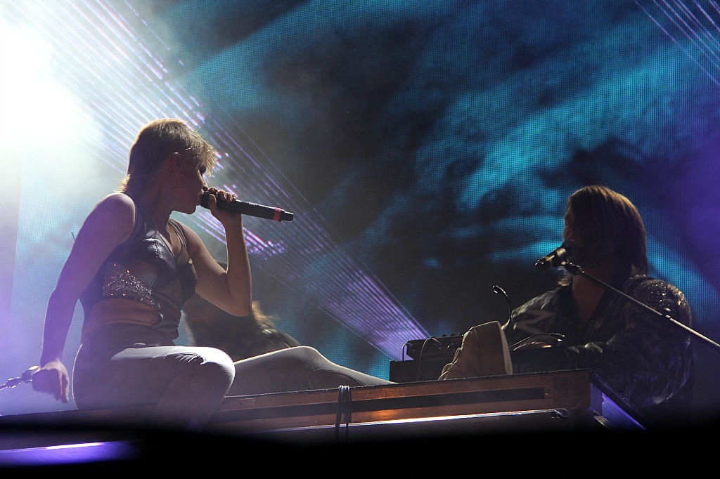 It wasn't all new stuff. "Indestructible" got a big cheer, so did "Stars 4 Ever," but the biggest response was inevitably reserved for mega-hits "Call Your Girlfriend" and "Dancing On My Own," the latter's chorus surrendered to the crowd to deliver while she stood still caressing herself in that fake making out way we've come to expect from the song's live performances. Robyn's set ended with the sublime "With Every Heartbeat," which builds and builds without ever really reaching a resolution. It was a perfect choice to leave the audience clamoring for the finale duet.