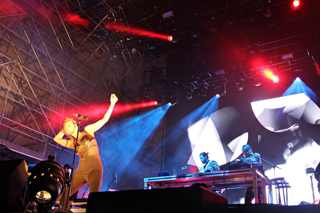 Truth be told, I saw quite a number of people leave after Robyn's segment, presumably having gotten what they came for. The two acts' joint mini-album hasn't been as strongly received as their solo work, but anyone who walked away without hearing it live, backed by a huge laser show, sparkly silver costumes, robot helmets and confetti shooting out of cannons, missed out. The set began with "SayIt," which saw Röyksopp wearing metallic hoods and Robyn lying on a table, bouncing up and down with an ab ball stuffed into the back of her bomber jacket. It seemed to reference the birthing some alien/robot form, but I'm not entirely confident in that interpretation. Though brief, the set was not just a run through of the Do It Again EP. "The Girl and the Robot," one of my favorite pop songs ever, appeared early, and the night closed with a rare treat, "None of Dem."