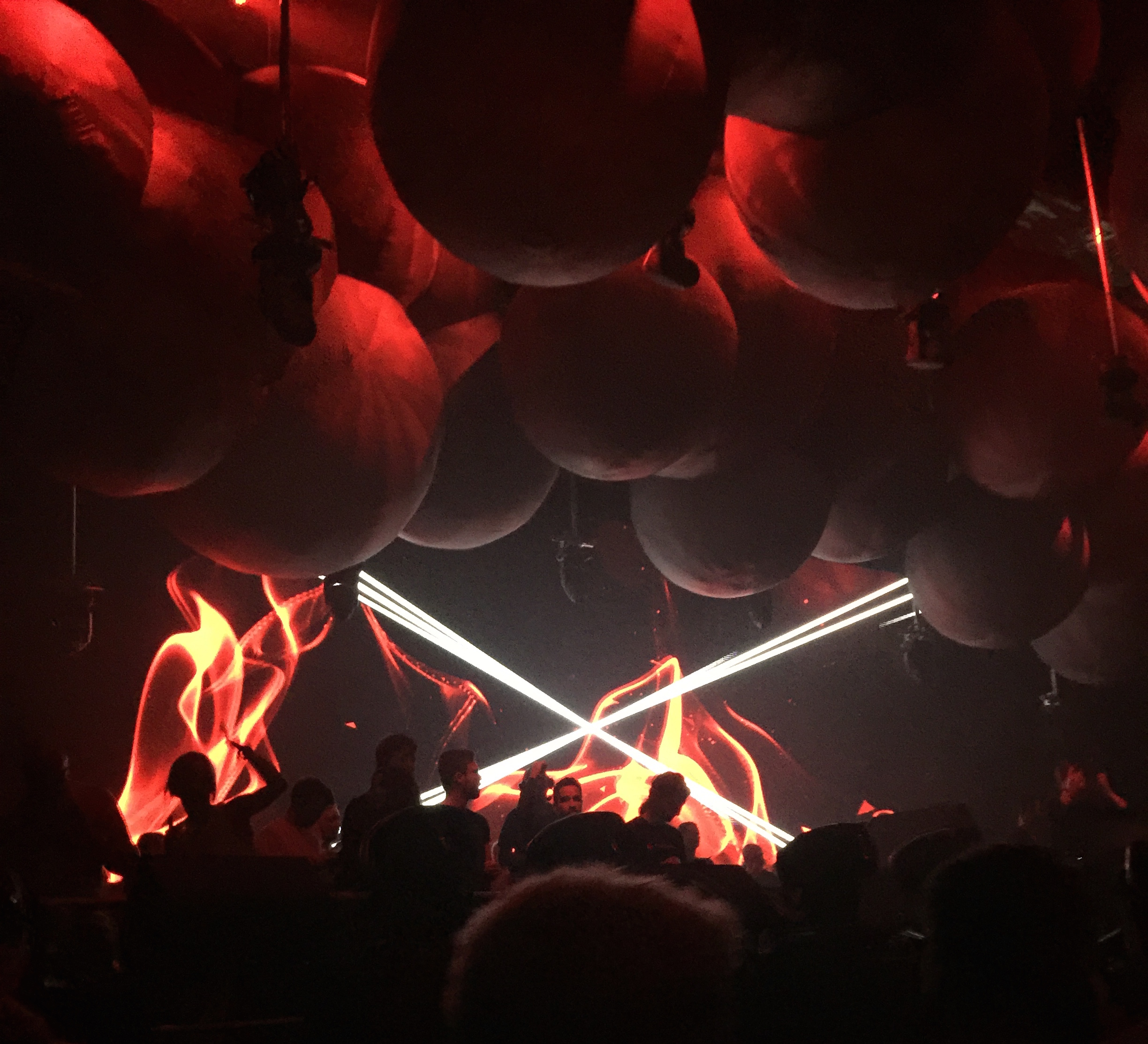 Next door, glowing red fangs appeared to swallow the stage where Chris Liebing performed, and beams of light shot down from the ceiling like lasers darting to high-pitched percussion.