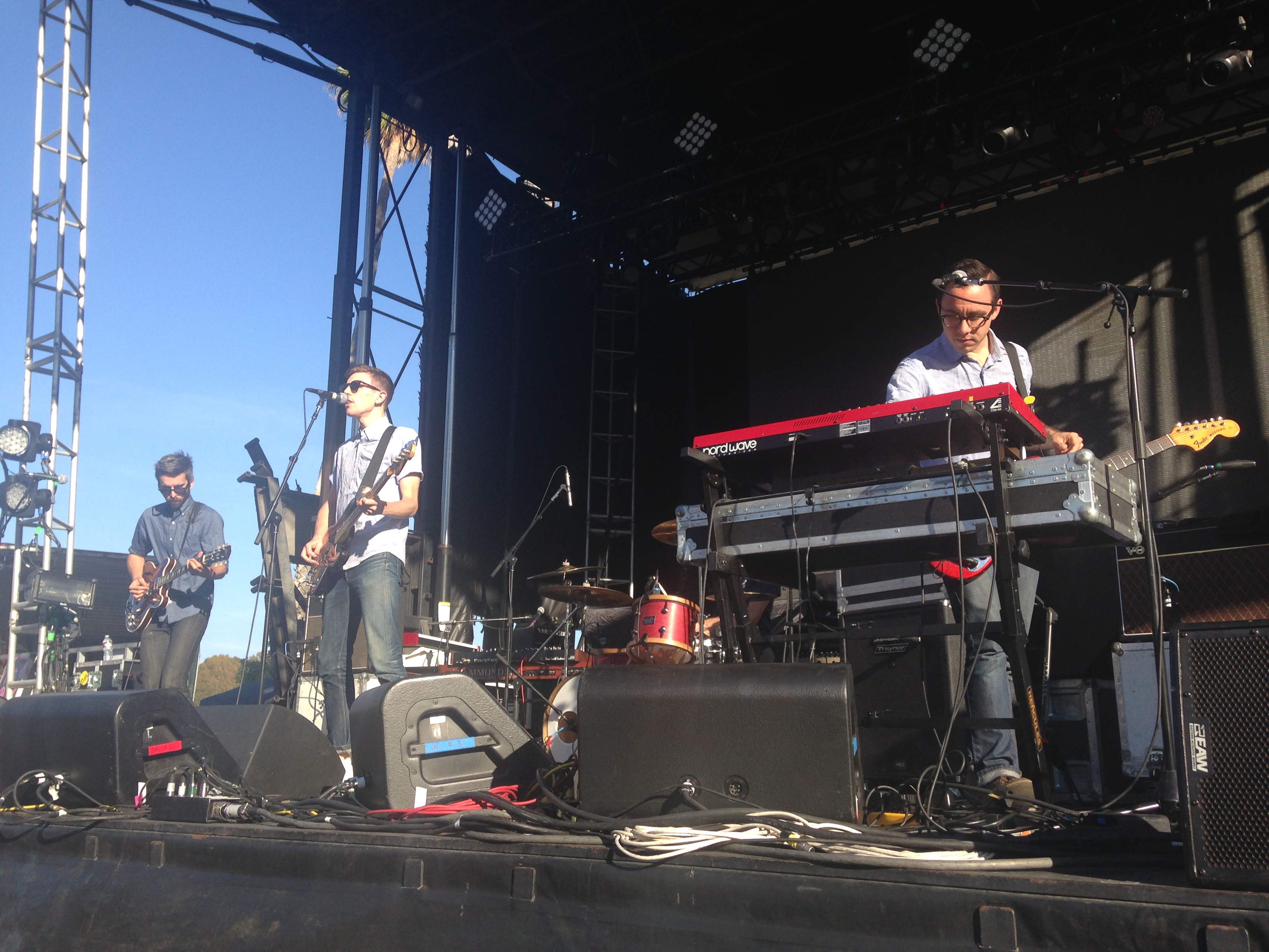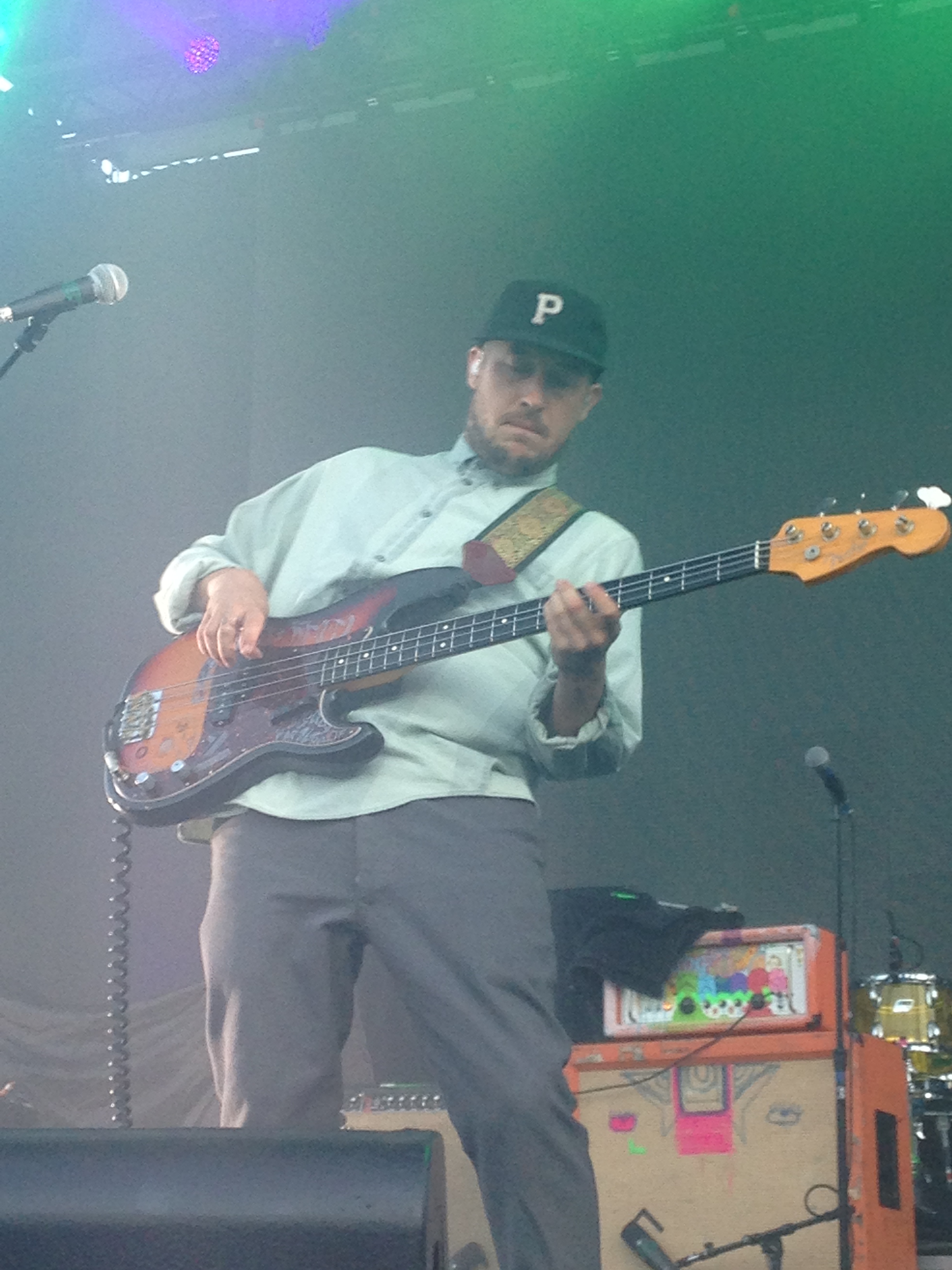 The crowd grew denser as Portugal. The Man prepared to play. The last time I saw PTM my ears rang for a solid two days (an early sign of hearing loss but an indication of a kick ass rock show). Luckily, this outdoor concert didn’t blow out my eardrums, though that’s not to say they didn’t deliver in the volume department. The best thing about a PTM show is that they weave multiple songs together without any breaks, often times throwing in an old classic. They started out this set with the intro from Pink Floyd's “Another Brick in The Wall”, that turned into their own energetic song “Purple, Yellow, Red and Blue.” The second best part of a PTM performance are the many, many jam interludes in the middle of a song. It’s almost impossible to tell where one ends and when another begins because the amount of riffing and musical banter that goes on between guitarist/vocalist John Gourley and bassist Zach Carothers is ongoing. The Alaskan group clad in black Pittsburgh caps rocked through the set, abusing their instruments in a myriad of ways; Zach smacks the back of the bass head as if to eek out a stronger sound from the instrument. I was taken aback when I heard the beginnings of their song “Waves” from their latest album Evil Friends. It was noticeably absent from the setlist when I saw them last year, and I have to say very much to my disappointment. When they started playing this oh-so-appropriate track (considering the beach setting), I, as we concert goers say, “lost my shit.” This is a band that really knows how to keep a crowd intrigued, not only with their energy but in their ability to weave pop culture into their set. Between their comic rendition of the Always Sunny in Philadelphia classic “Dayman” and Oasis’ “Don’t Look Back in Anger” they are able to reach various demographics within the crowd, that, as became apparent later in the show, were there for Grouplove. Even though half the crowd wasn’t singing along, at least from my view, they certainly were rocking out and absorbing the band's electrifying performance. By the time PTM had finished their set, the quota for crowd surfers had been exceeded and the air was rife with stinky smoke.