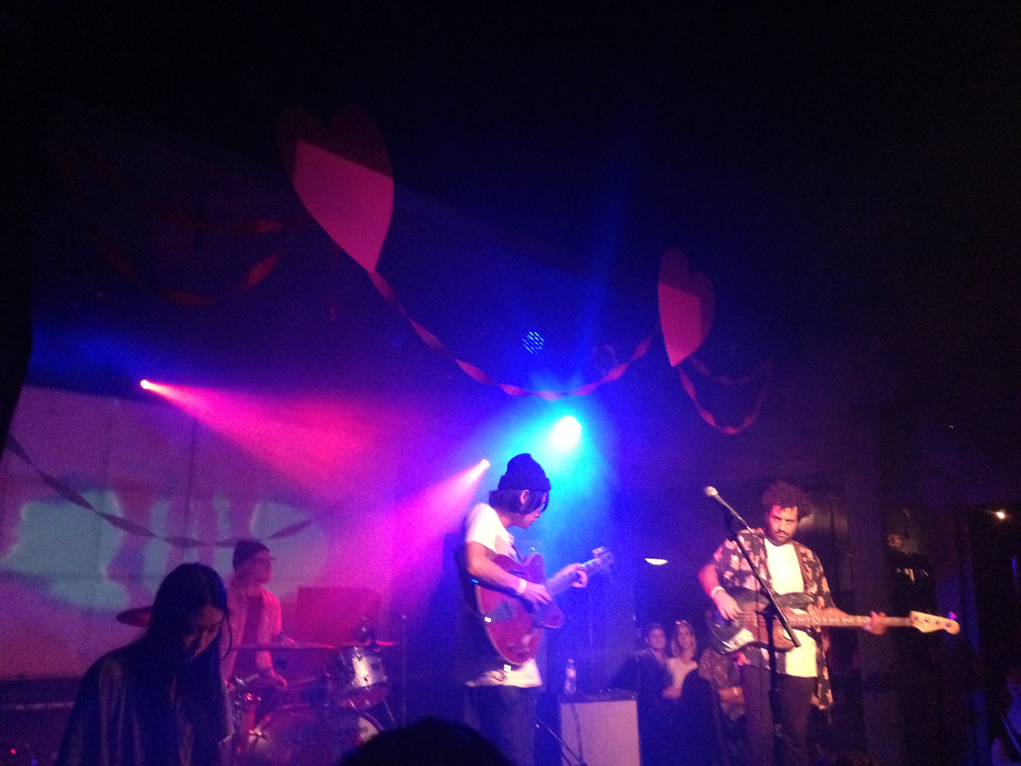 So Many Wizards, a local four piece with a strange ability to meld surf and shoegaze, played on the dynamic of break-neck cymbal crashes and mellow, jangly guitar, the changes of rhythm within songs adding an overall complexity to their poppy song structure. Of the lyrics I was able to catch, I'm pretty sure I heard the phrase “being fucked by love;” even if it was just my imagination it's a great summary of their general sound. Wandering to the next stage, I caught a set by Corners, whose surf-tinged synth pop had a dirtier and crunchier spin. Fans from the crowd joined them on stage, shimmying like go-go dancers around the band. Out on the Echo Patio, I was introduced to Adult Books, a lo-fi punk outfit featuring Daniel Quintanilla, one of Lolipop's founders. Their fast-paced set, which was fed by their exquisite sense of interesting rhythm, got the pizza eating, cat-shirt wearing crowd very riled up. People were crowd surfing and hanging off the poles meant to keep the outdoor tent standing.