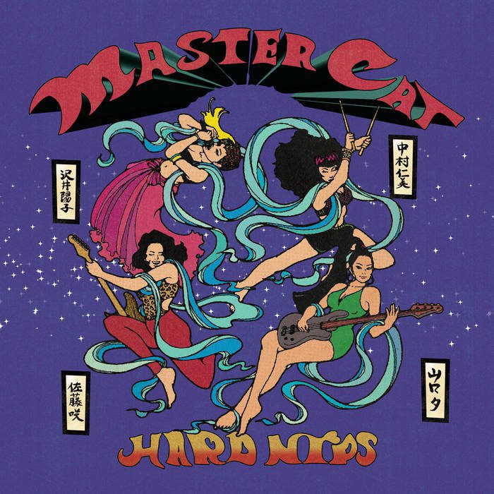 Hard Nips might have formed in Brooklyn in 2009, but their music has a late ’70s/early ’80s pop/punk/new wave vibe ‑ think Blondie, B-52’s, the Ramones. Smart and sharp, a bit of an edge, but a good dose of humor as well. The Japanese foursome (bassist Gooch, drummer Hitomi, and keyboard/vocalist Yoko born in Japan, guitarist Saki hailing from Long Island) are drawn as stylish superheroes on the cover of their new album Master Cat (Dadstache Records), soaring through the air as they spread the gospel of “sex, sushi and rock ‘n’ roll!!!”