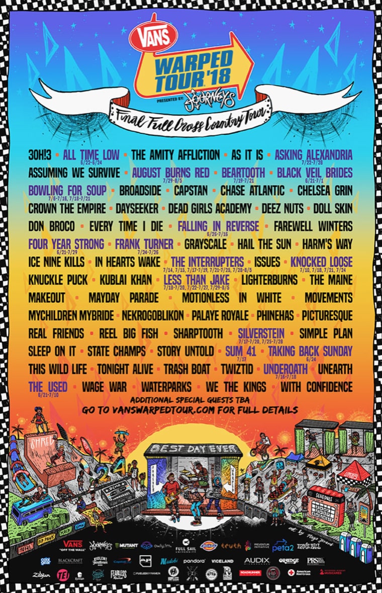 It’s the end of an era for pop-punks, emo kids, and sk8er bois - Warped Tour just announced their final cross-country lineup and it’s going to be a very grand finale! The show will hit the road for virtually the whole summer; kicking off on June 21st in California and ending on August 5th in Florida. Warped veterans Sum 41, Taking Back Sunday, Simple Plan, the Used, and All Time Low are along for the ride with more than fifty other artists. In a public letter, tour founder Kevin Lyon reflected on the history of Warped since its start in 1995 and what the future holds for the venture.