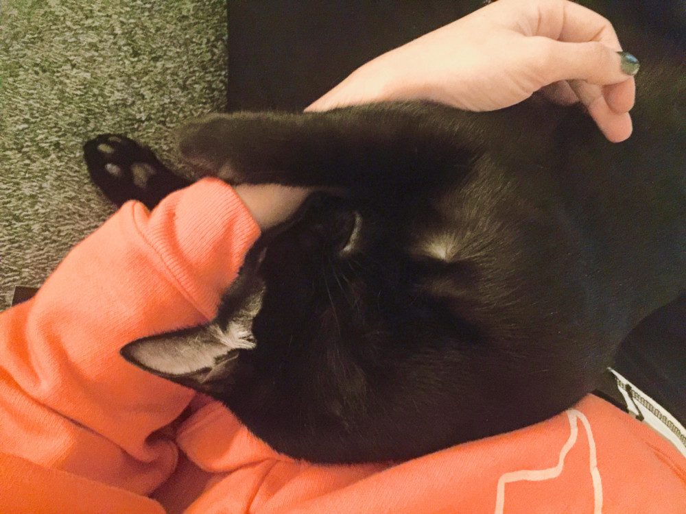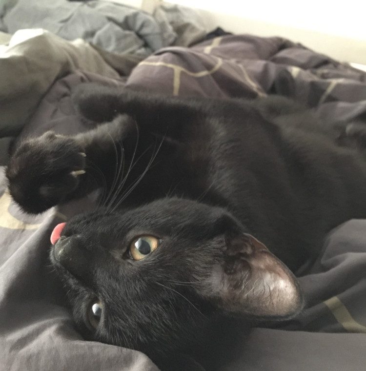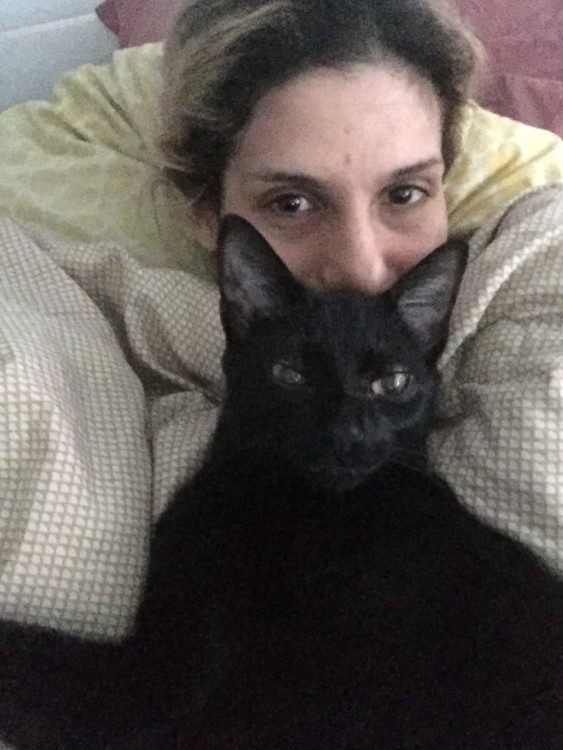 AB: This is Bruce Squiggleman Kittowitz! He's almost a year old, and super-affectionate. He's a purr machine with a huge personality. He loves to snuggle, play fetch, steal human food, chase a laser, run the length of the apartment and back at full zoomy speed, and drink from the bathroom sink. Whenever Tim or I comes home he greets us at the door and meows at us until we give him hugs. He's an excellent conversationalist. He sleeps next to my head every night. He's Jewish, like his mom, and we're looking forward to giving him a bar mitzvah when he turns 13 (which is around 2 in cat years).