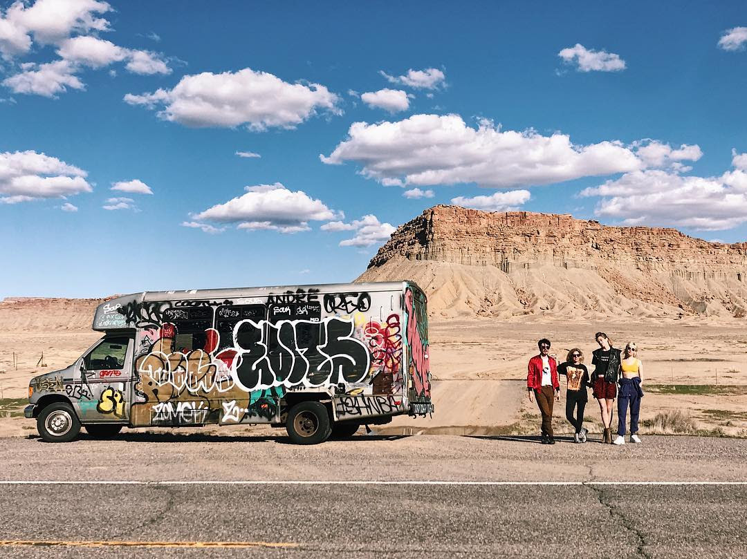 Fruit & Flowers pitstop in the deserts of the USA to pose with their tour bus Sylvia.