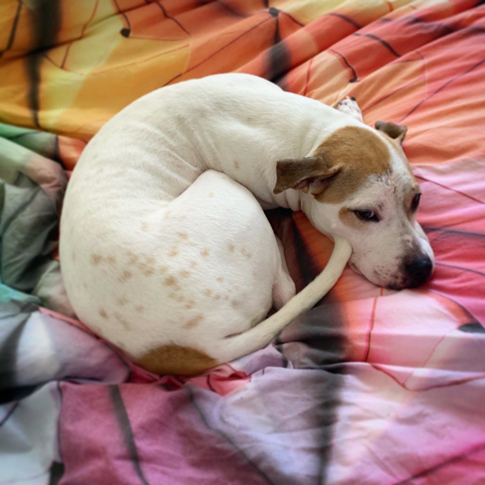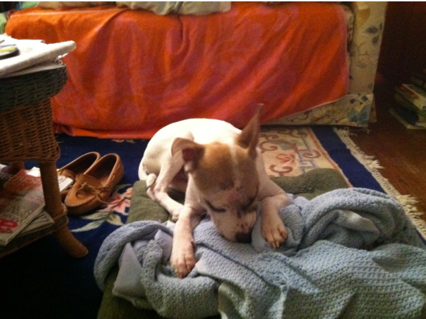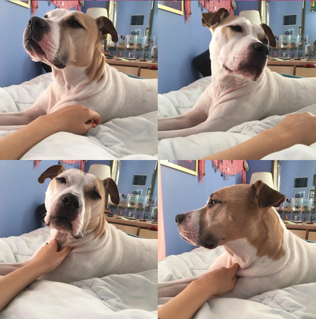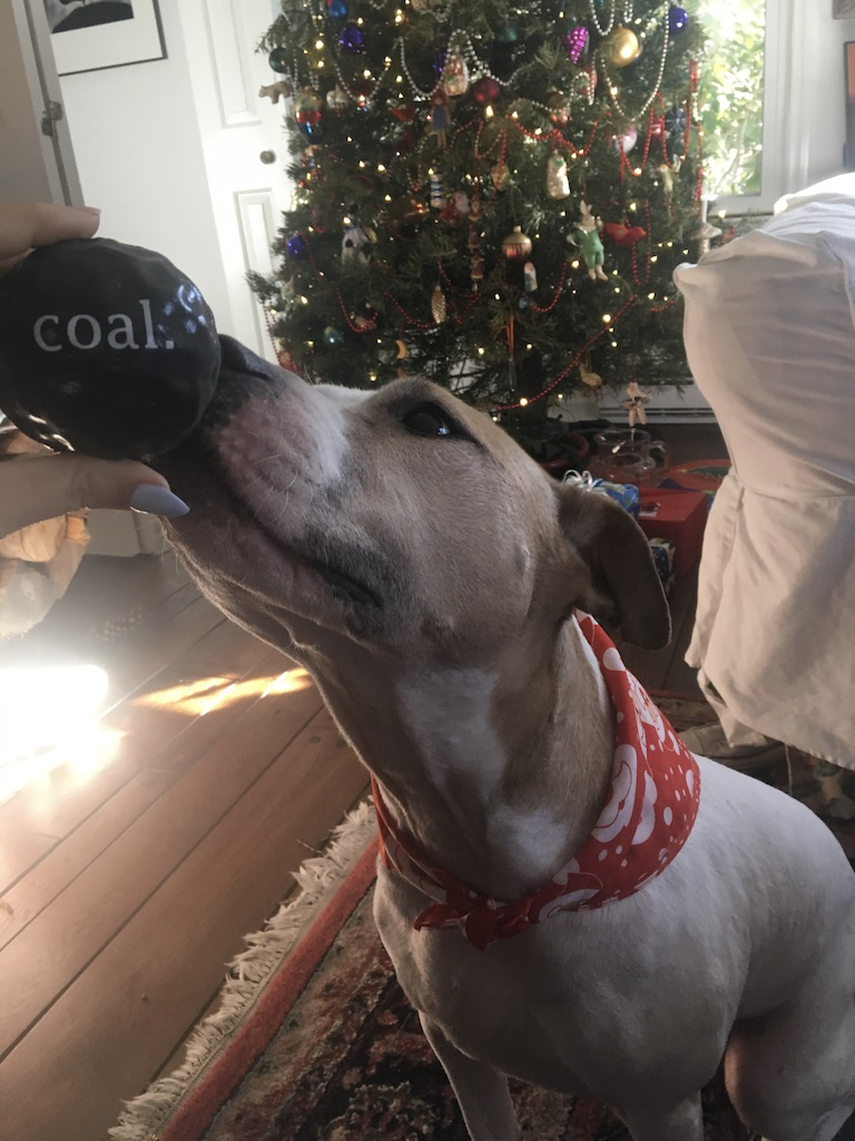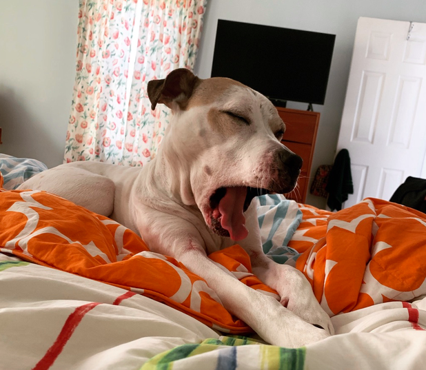SD: As he’s gotten older - turning nine this year, already! - Buster’s gotten less good with other dogs, which is a bummer since he used to love playing at the dog park. My mom lives near a dairy farm and when we drive past the cows, Buster loses it. I think he wants to befriend them, which of course I would encourage if I wasn’t worried he’d scare them. Personally, I would love it if Buster made pals with a pig, because that would mean I got to be pals with a pig, too. But honestly, he thinks he’s a person and mostly he just wants to hang out with us.