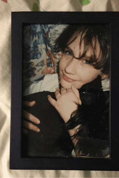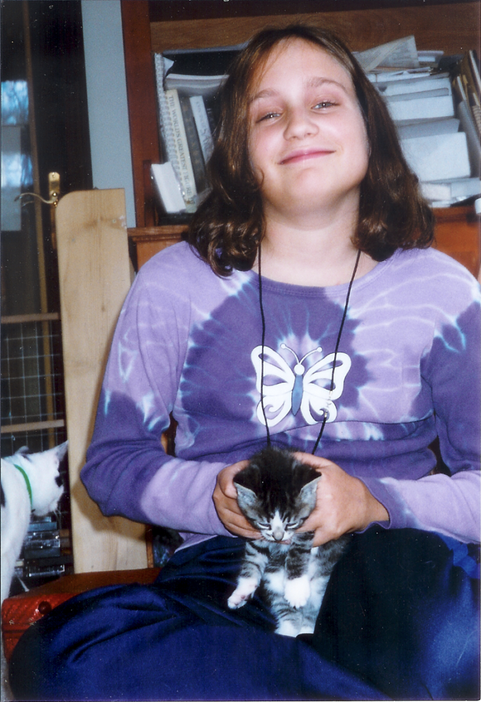 1999ish, high on Claritin, holding Rudy (mother Kitty in the background).