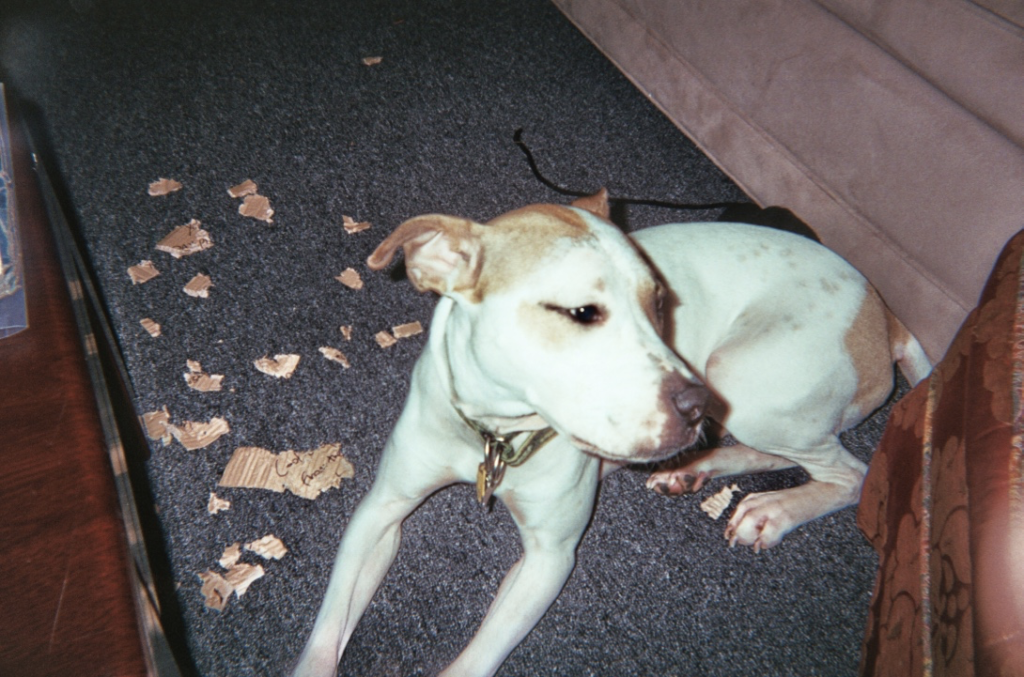SD: There was an early Speedy Ortiz song called “frankenweenie” about putting down my childhood dog, partially as a metaphor for getting out of my first long-term relationship. That’s the most specific one I can think of. Animals show up all over my work, though, now that I think of it. Our first album has songs about tigers, horses, fish, rats, not to mention some dog-specific terminology like “coats for curs” and “kennel cough.” The second album has a golden Foil Deer as its album artwork, title, and central metaphor. So I’m very drawn to non-human entities in my work. Also, we’ve tried to put Buster in music videos or press photos like five times. Varying levels of success.