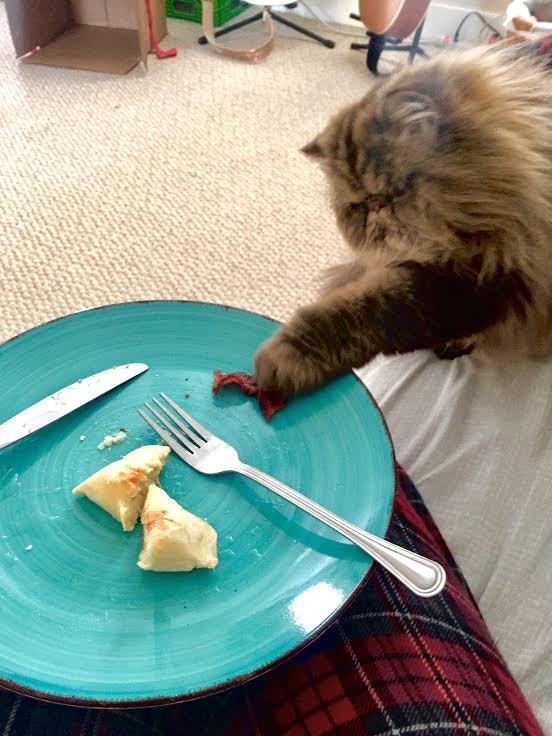 Romeo trying to steal some of Dad's food (Photo Credit: Ryan Foster)