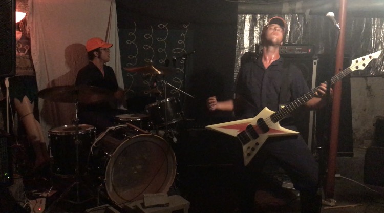 The Jan’s Rooms crew stacked the lineup for the final show at one of Bloomington’s most popular house venues. Eager to catch the entire bill, I arrived in the basement in time for local punk band Laffing Gas’s opening set. Although I instantly regretted my oversight in not bringing earplugs along, the infectious energy that emanated from the frenzied instrumentals and fiery vocals made the minor physical discomfort worth it. The second act of the night was Twinso, an Evansville-based hardcore punk duo. Donning matching jumpsuits and orange hats, Twinso visually referenced a Devo aesthetic during their performance. The true surprise came when they began to play their instruments, juxtaposing a whimsical visual with heavy sounds: explosive bass lines and wildly accelerated drum fills.
