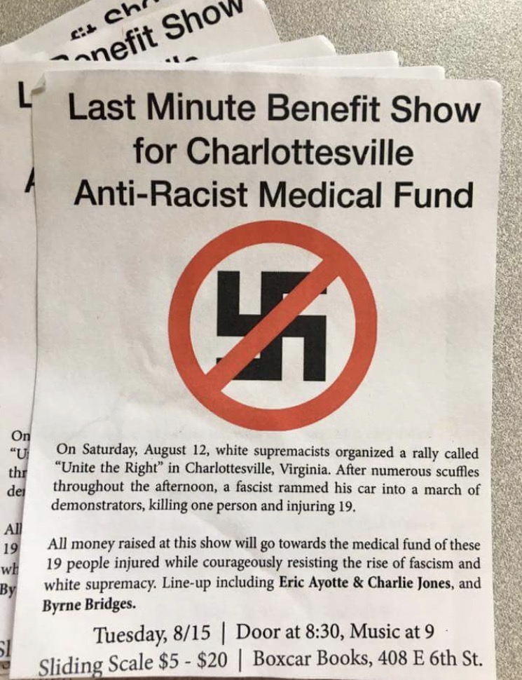 (8/15) Charlottesville Benefit feat. Eric Ayotte, Charlie Jones, Byrne Bridges, Fresh Kill @ Boxcar Books