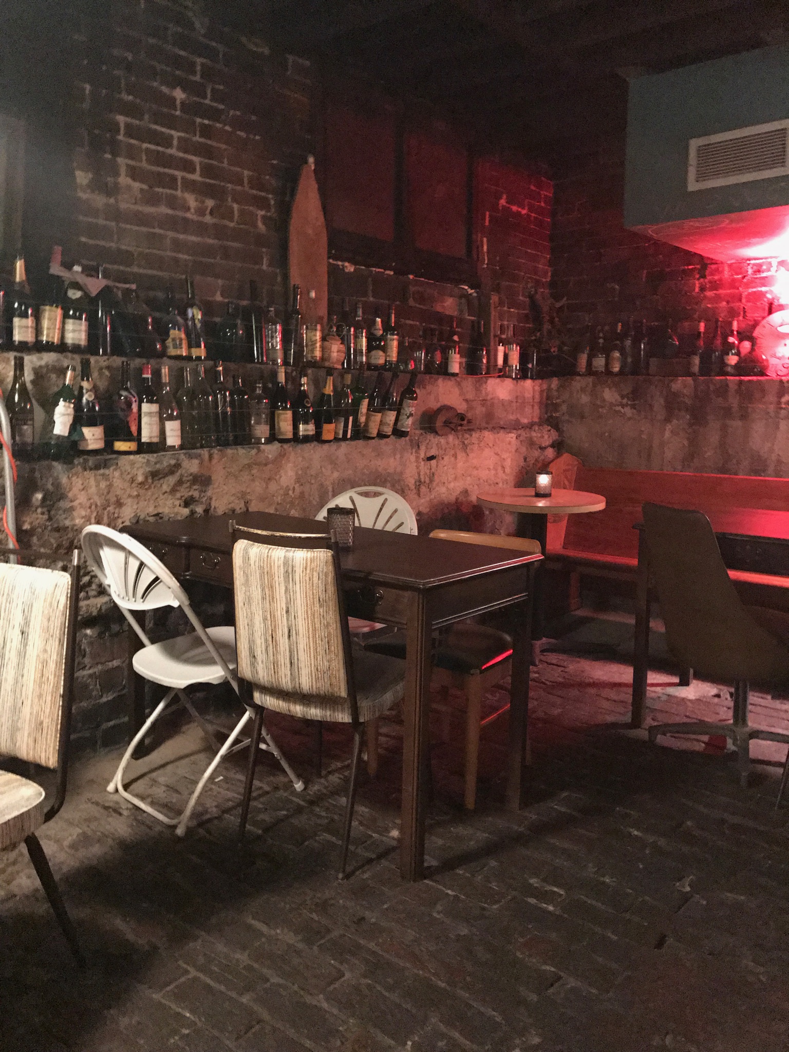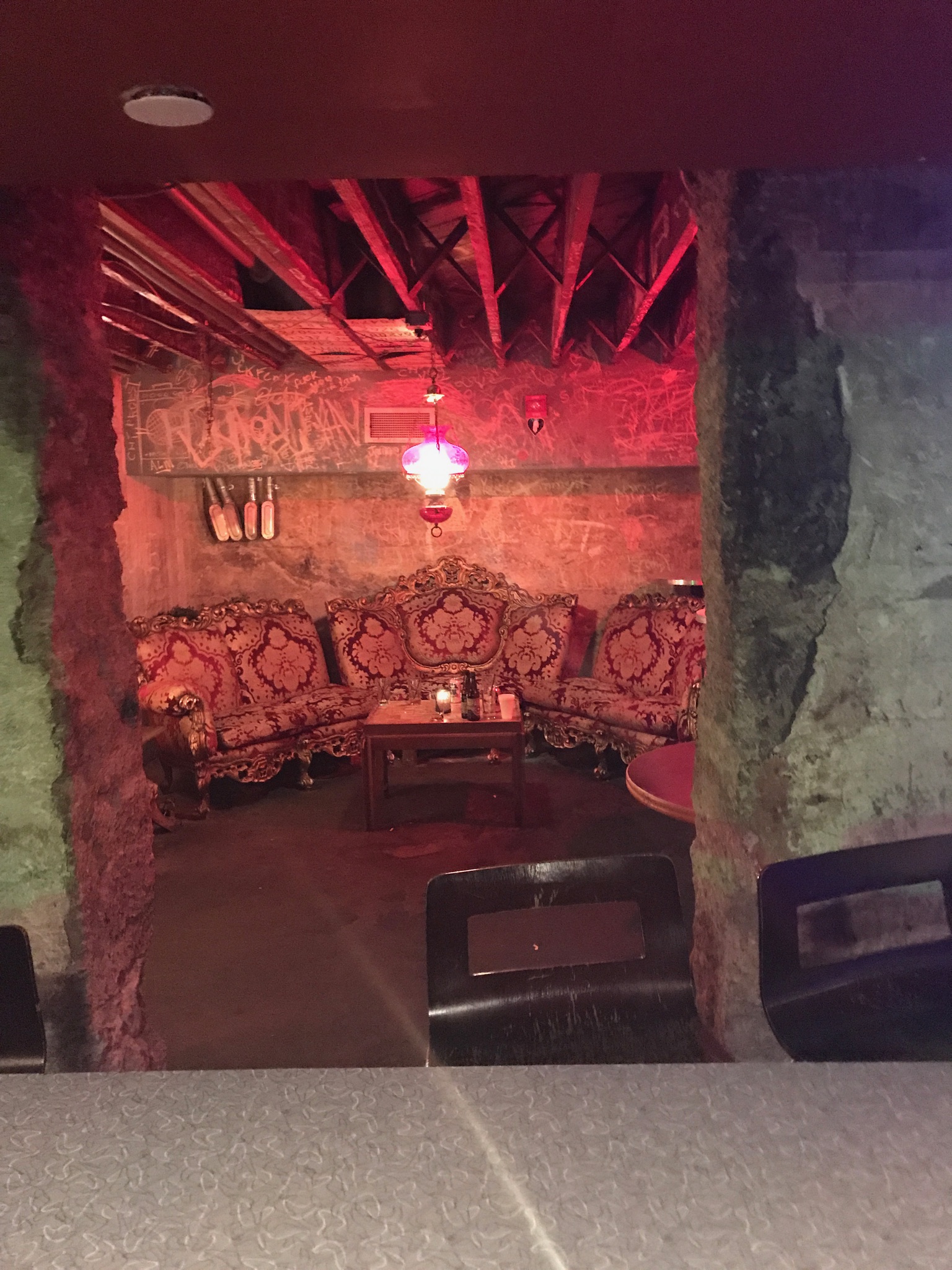 The third installment of Punks Give Back! Bloomington was held at the Root Cellar. Accessible via two different alleyways and through a parking lot, the Root Cellar occupies the basement of Farm, a popular restaurant in town. One has to walk through an unmarked door at the bottom of a flight of stairs to enter the Root Cellar. Despite its conspicuous location, The Root Cellar, with its hipster-meets-rustic-grime aesthetic, is a popular spot for those who prefer to avoid the more mainstream bars that cater to Indiana University’s overwhelmingly present Greek life.