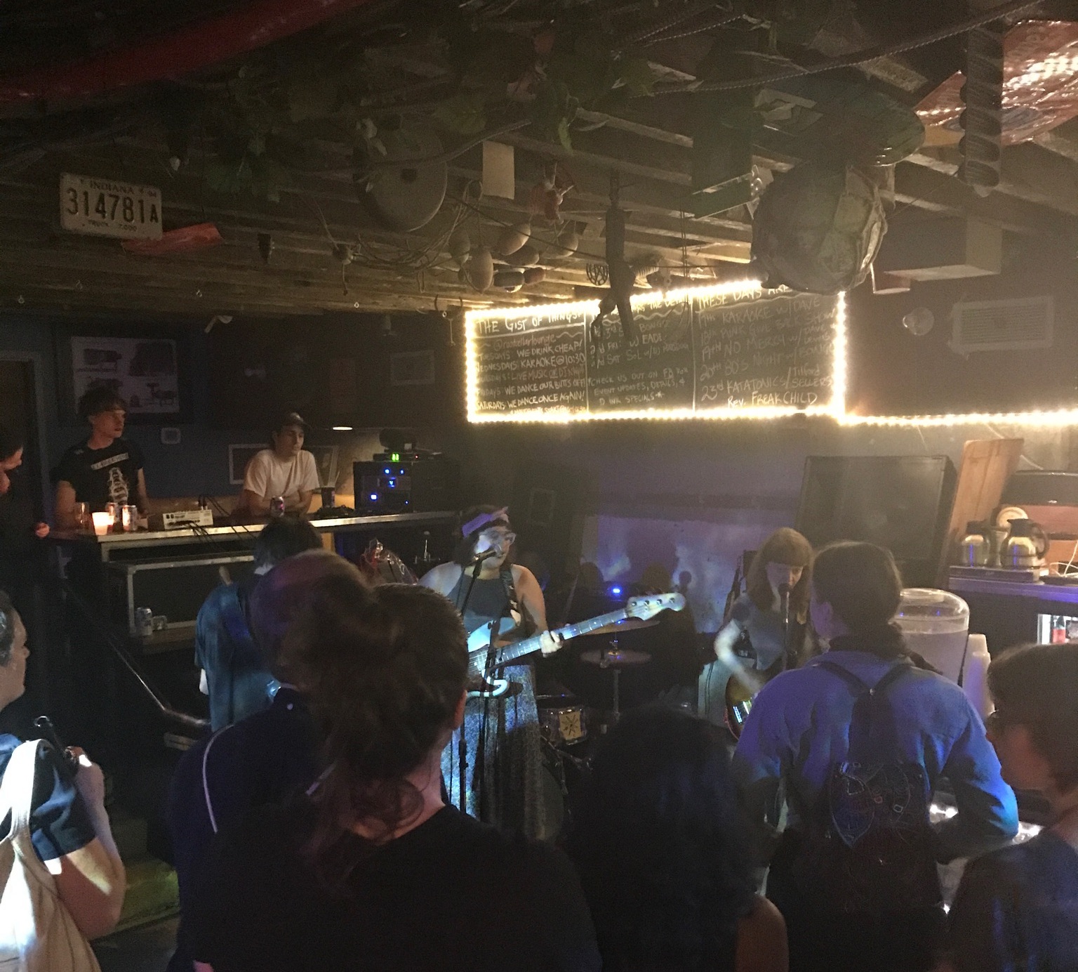 Next up was Doozie, a power pop foursome with a 90s retro grunge aesthetic. Their music is unapologetically straightforward, simple yet captivating, and extremely personal. The audience bopped around to Doozie’s upbeat and catchy riffs, yet from where I was standing the band seemed to be coolly unaware that there was any audience at all. The guitar player had his back to the audience for the entirety of the performance, while the other members seemed to be equally wrapped up in their own actions. Doozie released their first demo back in June 2016. It is available for streaming below.