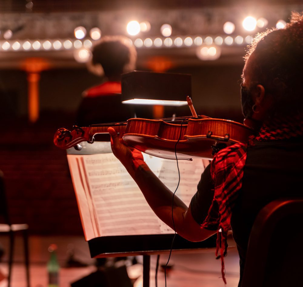 The performance was also co-composed by Preston Charles III and featured musicians from the Cincinnati Symphony Orchestra and beyond – several of whom played steadily in the city before the pandemic. “It’s a beautiful thing, bringing different people together to create something we’re all equally passionate about,” says Stallings. “We have a lot of diverse musicians: white, Black, women, men, people who identify as nonbinary. We have a palette of different people with different stories about why they like hip hop. They all come from different backgrounds. One person, their whole family plays classical music, and they just love hip hop. Another, their father was a rock musician in China, and they like hip hop… I think it’s a beautiful thing; we’re creating a conversation.”