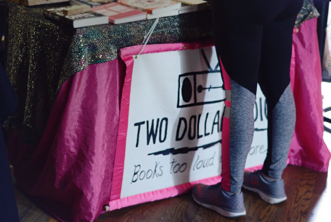 Last weekend, at Columbus' Flyover Fest, I did all of those things–all of the events, the socializing, the book buying, and more–within a two-block radius. The Fest, which was started last year by Two Dollar Radio, a local book-publisher and film producer, is held in a smattering of independent bars and venues, as well as in the Wexner Center for the Arts on OSU's campus. Stages are shared by both community and touring artists, and at the heart of the fest is an interdisciplinary approach to the city's art-making scene. I was excited by the varied bills, which never stuck to one genre or aesthetic, and which, though long, always felt worth staying through. Crowds were casual and light-hearted; unlike so many of the shows I go to, I was never pushed, or hit on, or yelled at, or spilled upon. It was nice.