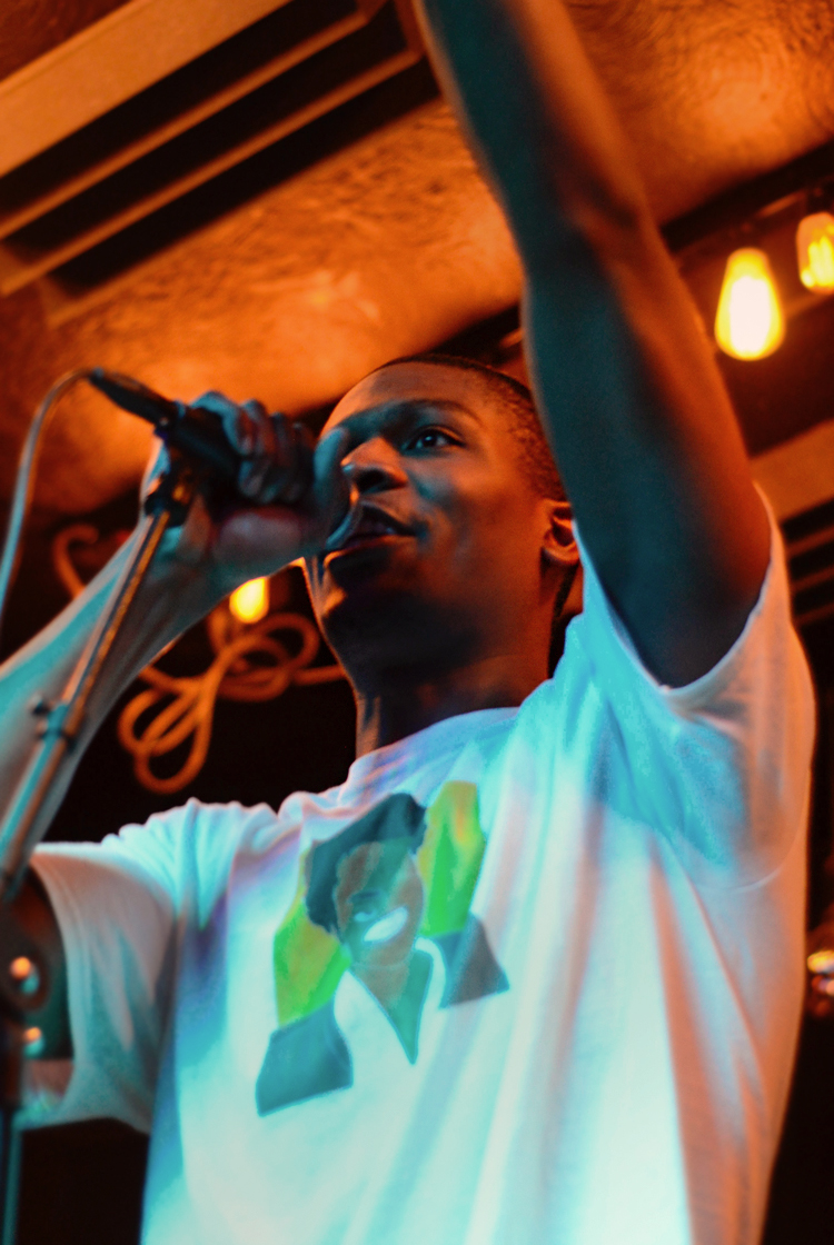 Equally exciting was Sarob's performance at Spacebar on Saturday night. The rapper was sandwiched between local band WYD and hip-hop pillar Open Mike Eagle, who Sarob repeatedly cited as an inspiration and icon. Sarob is young, but looms large during his performances, engaging willfully with the crowd as he dances and jumps between the stage and the floor. His songs move between soul and verse; even when he raps too fast to catch all of the words, the delivery is sharp enough to sting, smartly, like a slapped ruler. Like Udoh, Sarob plays at local shows frequently, and, like Udoh, he's worth seeing at every possible opportunity.