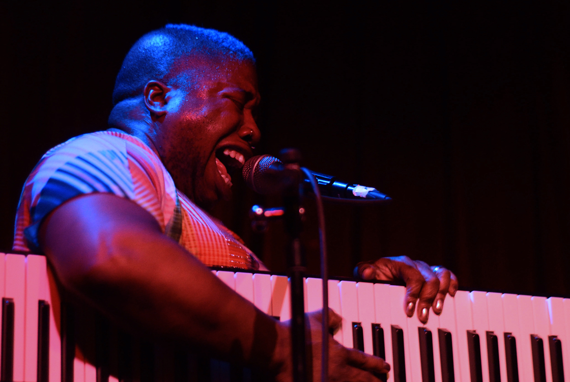 Udoh's performance, too, was remarkable in its fervor. Each song from Counterfeit Madison's debut feels intensely crafted, as though many different musical threads were woven tightly together to make songs which spring forth with energy. That energy is only further intensified onstage. Udoh and her band screamed, smiled, and laughed; Udoh's physical presence on the stage was very much a part of her performance too. As she sang, Udoh flung her microphone onto the ground, picked up her keyboard to play it sideways, and at one point, threw her body into the crowd to finish the performance while writing on the ground.