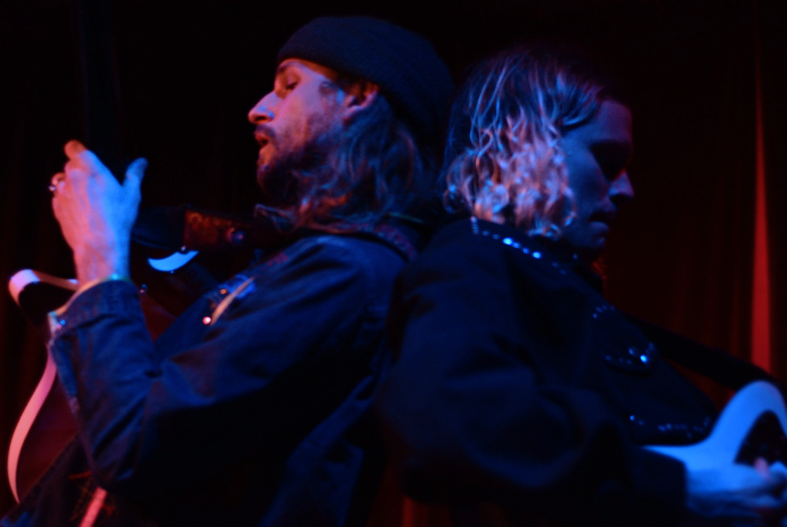 By the time Saintseneca took the stage, the crowd had thickened and warmed, and they poured themselves into the front of the room to press closely to the band. It was an impressive set-up – four of the five touring musicians lined up next to each other at the front of the stage, each of them with a full row of pedals and synths. They looked like a team. And when the band, at once, burst into play, the coiled energy that they had built together paid off in a big way.