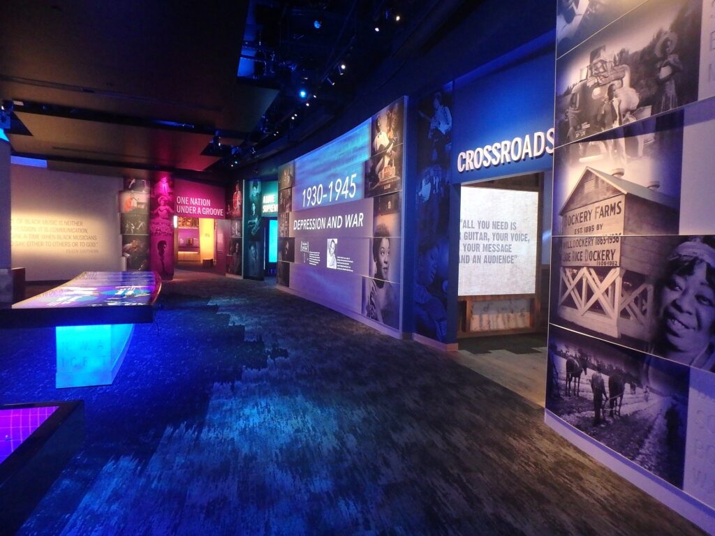 What makes NMAAM particularly compelling is the interactive element of the exhibits. In the “Crossroads” gallery, visitors have the chance to play a choose-your-own adventure game where you’re presented with a story of a woman living in rural Mississippi who must make a fight-or-flight decision as a flood threatens to destroy her home, or you can choose to follow the blossoming love story of a young couple in Chicago in the mid-20th century, the power lying in the user’s hands as to what decisions the characters make, with music guiding the story along all the while.