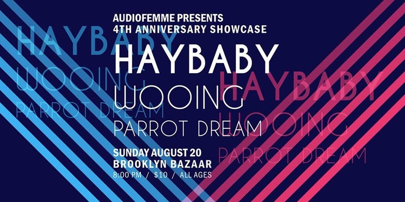On Sunday, August 20th, Audiofemme takes over Brooklyn Night Bazaar in honor of our fourth year on the interwebs! Since our inception, part of the blog's mission has been to showcase not only the writing of female-identified journalists, but also some of Brooklyn's best emerging bands. One of our favorite ways to do that is to throw a big ol' party with a killer line-up, and we're super excited about the three bands playing our anniversary shindig. Read on (and take a listen!) for more info on Haybaby, Wooing, and Parrot Dream below, and if you're able to make it to Greenpoint on Sunday, be sure to say hi to your hosts. We can't wait to see you there!