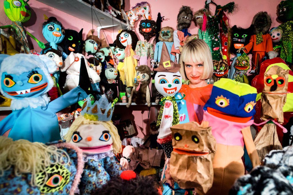 Meanwhile, Miss Pussycat, who is also a visual artist well known for her puppet shows, released Anthropomorphizer: Puppet Show Soundtracks. She currently has art on view at Webb Gallery in Texas and as part of the group show, "I Forgot to Laugh" at Pensacola Museum of Art. For the latter, she made a series of papier-mâché maracas filled with aquarium rocks that are resting on pillows, since, she says, "they can't do a rock show."