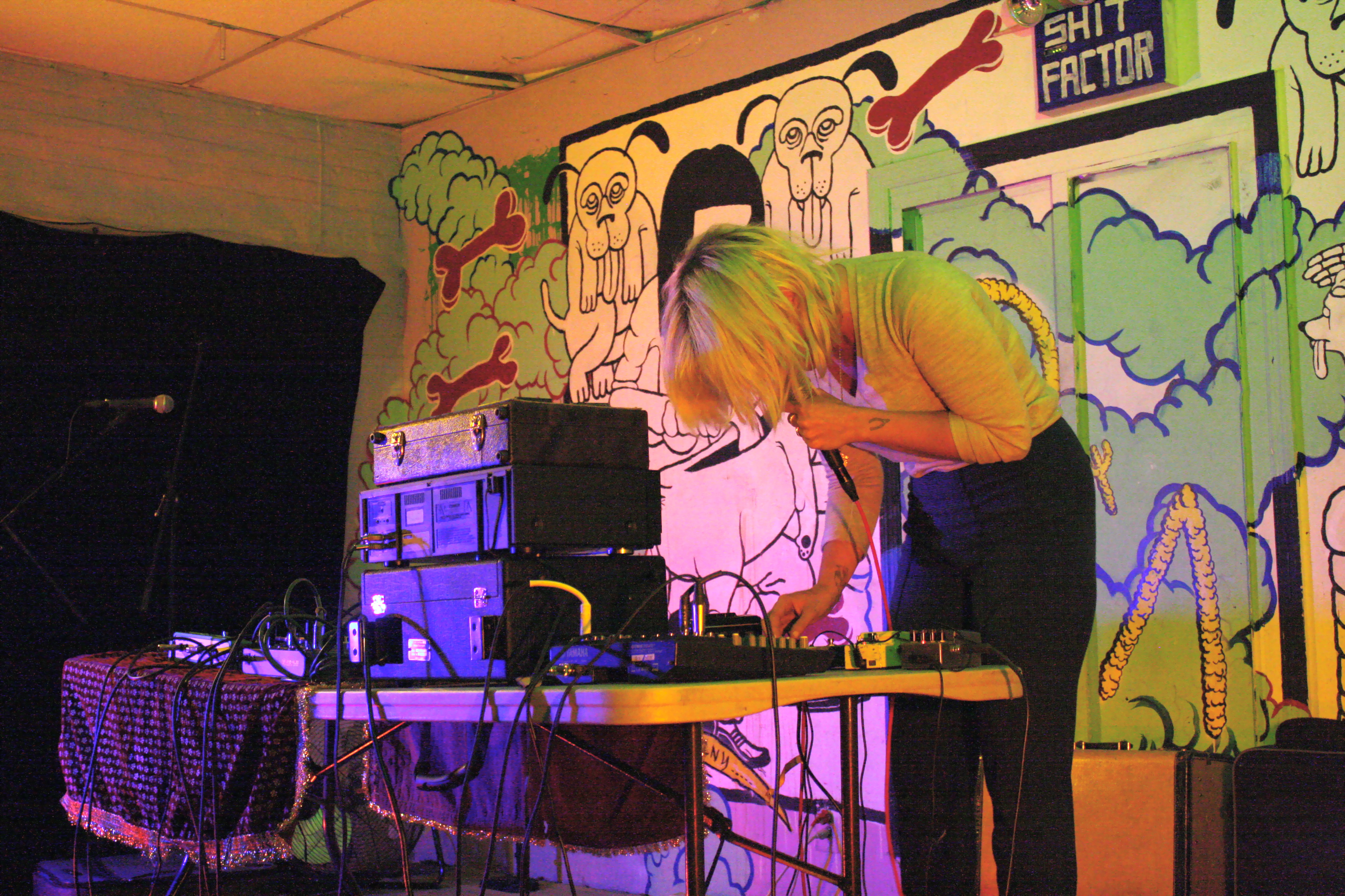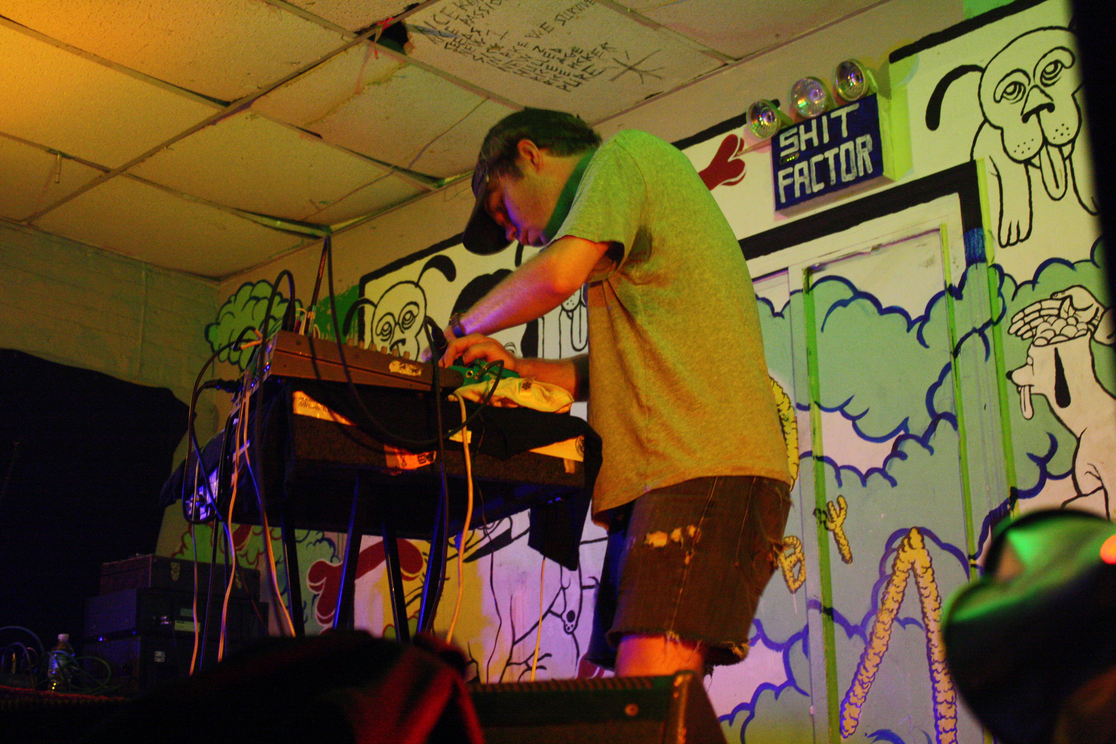 As a founding member of Black Dice, Eric Copeland has been melting my face for years. I'd seen them live a handful of times in the early- and mid-aughts and had fond memories of sweaty thrashing and abused cilia. I was overjoyed when they were announced as openers for Animal Collective's Celebrate Brooklyn show last summer and pleased that they were just as great as ever, even though the venue was not the sort I was used to seeing them play. Even though I enjoyed Eric Copeland's solo material I'd never gotten a chance to see what it is exactly that he does by himself in front of a crowd. At Death by Audio on Sunday, I found out.