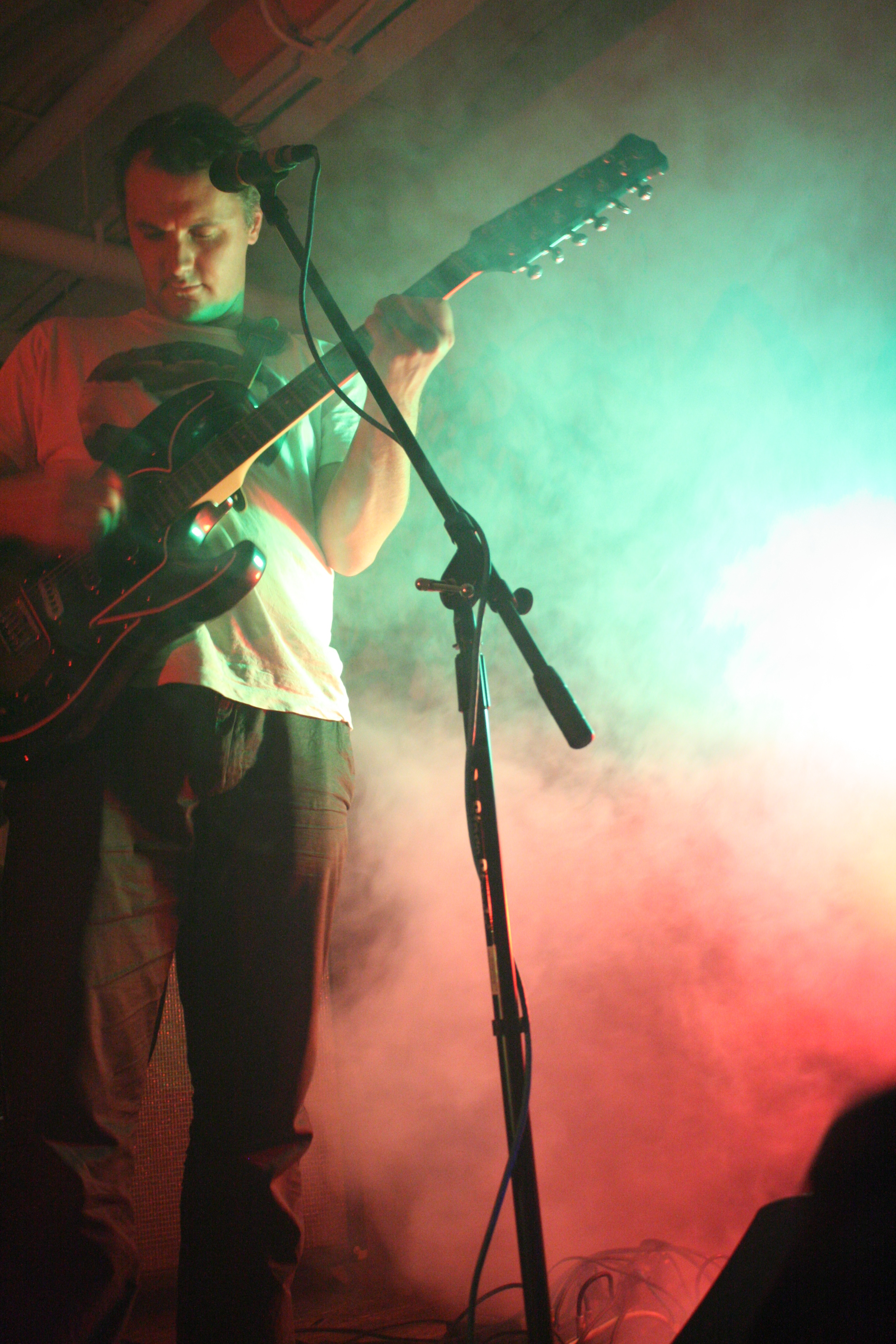 During the set, Phil Elverum and his bandmates could be seen milling about the crowd - putting finishing touches on set-up, selling records, and chit-chatting with fans. This highlights one of the best aspects of Elverum's live performances and work in general; despite the emotional depth to his work and its esoteric facets, he is really just normal guy. He doesn't take himself too seriously, preferring to interact with the crowd, making jokes at his own expense. The band had a little trouble with initial set-up, blowing two amps and lacking connections for some of the instruments, during which Phil took it upon himself to introduce the new material as well as his four touring bandmates, all on loan from their various bands and side-projects.