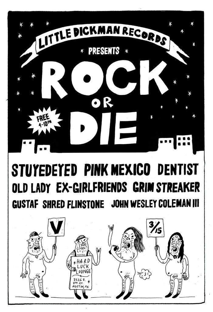 We are stoked for Wednesday 3/15, Hard Luck Lounge, nine bands, including Stuyedeyed, Grim Streaker, Pink Mexico, Ex-Girlfriends, Dentist, Gustaf, Old Lady, John Wesley Coleman III, and Shred Flinstone.