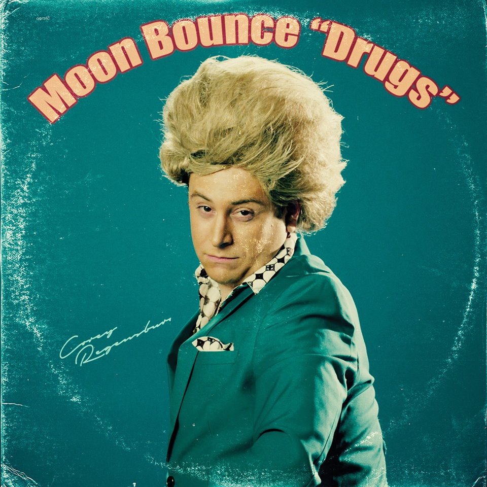Unsurprisingly, Moon Bounce's video for the single "Drugs" is as trippy as its title suggests. Spoofing terrible album art from Wayne Cochran, Grace Jones, Prince, and more, the titillating track takes listeners on a tongue-in-cheek waltz through the aisles of a record store that would make any collector's head spin.
