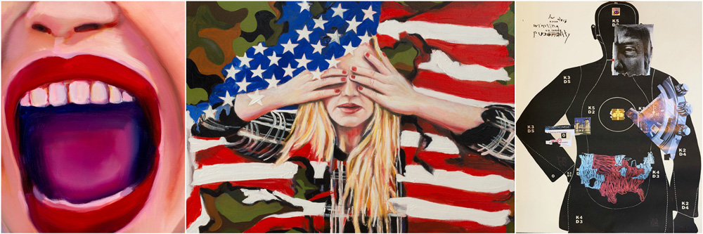 Artwork featured in the UPRISE: ANGRY WOMEN exhibit, left to right, Ingrid V. Wells, Annika Connor, Lili White