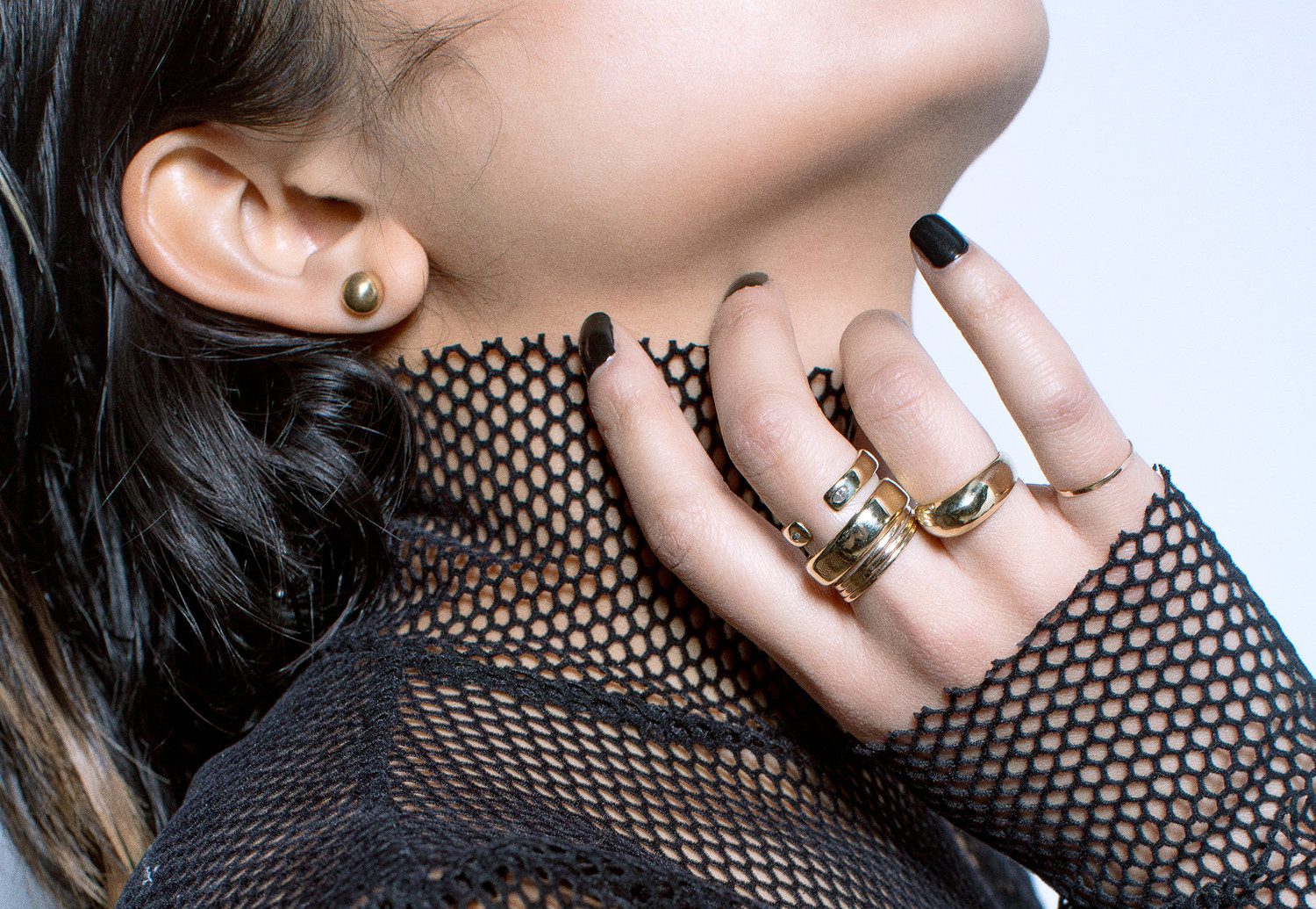RIP). We were both regulars and the bartender had mentioned her impressive jewelry to me before. I was inspired by her work from the beginning. Powers creates smooth, sharp, soft, and strong 14k gold designs that capture the duality of life and embolden those who wear these pieces.